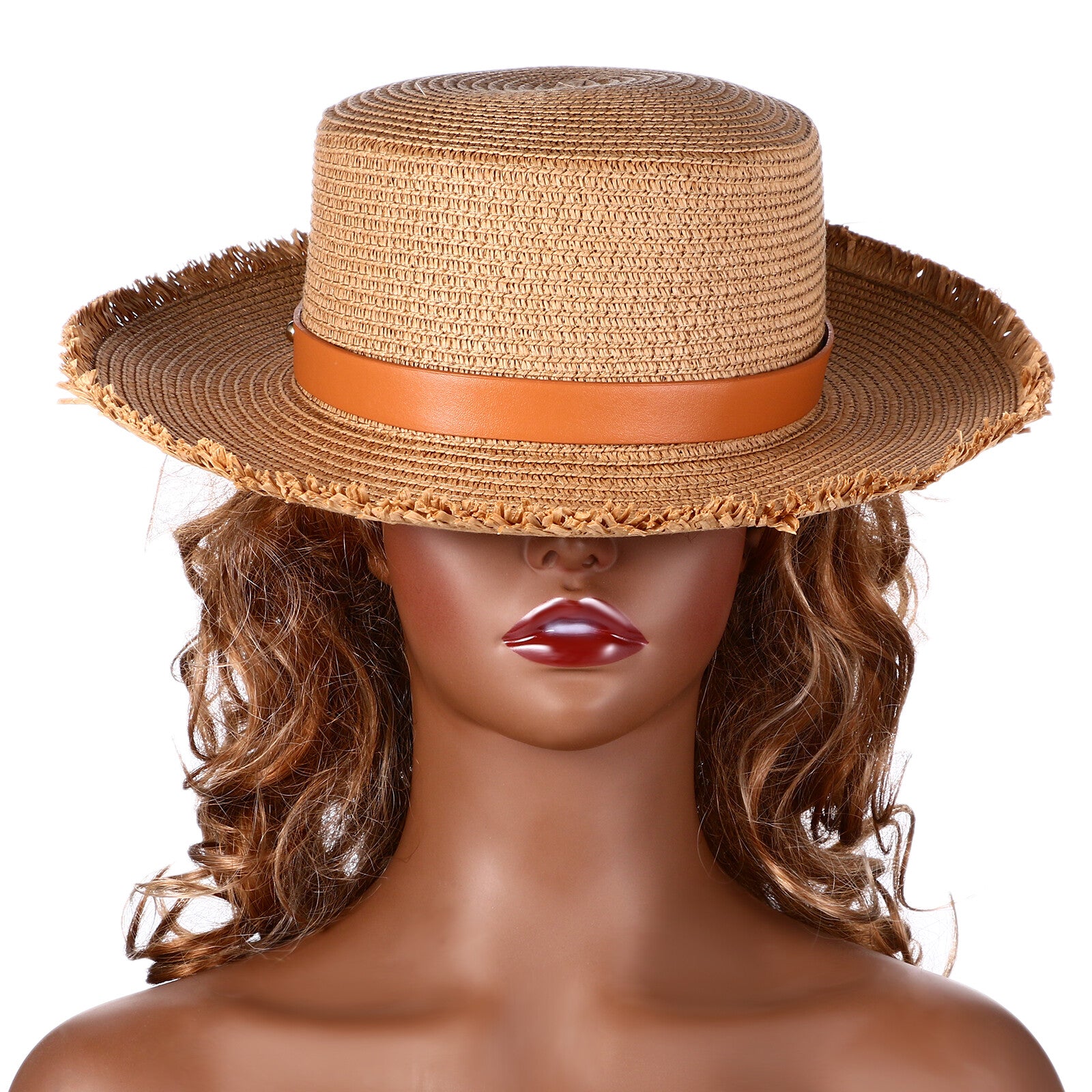 Sombrero de paja con cinturón retro para mujer de Boniskiss - Sombrero Panamá Fedora para el sol en la playa de verano con visera de rafia