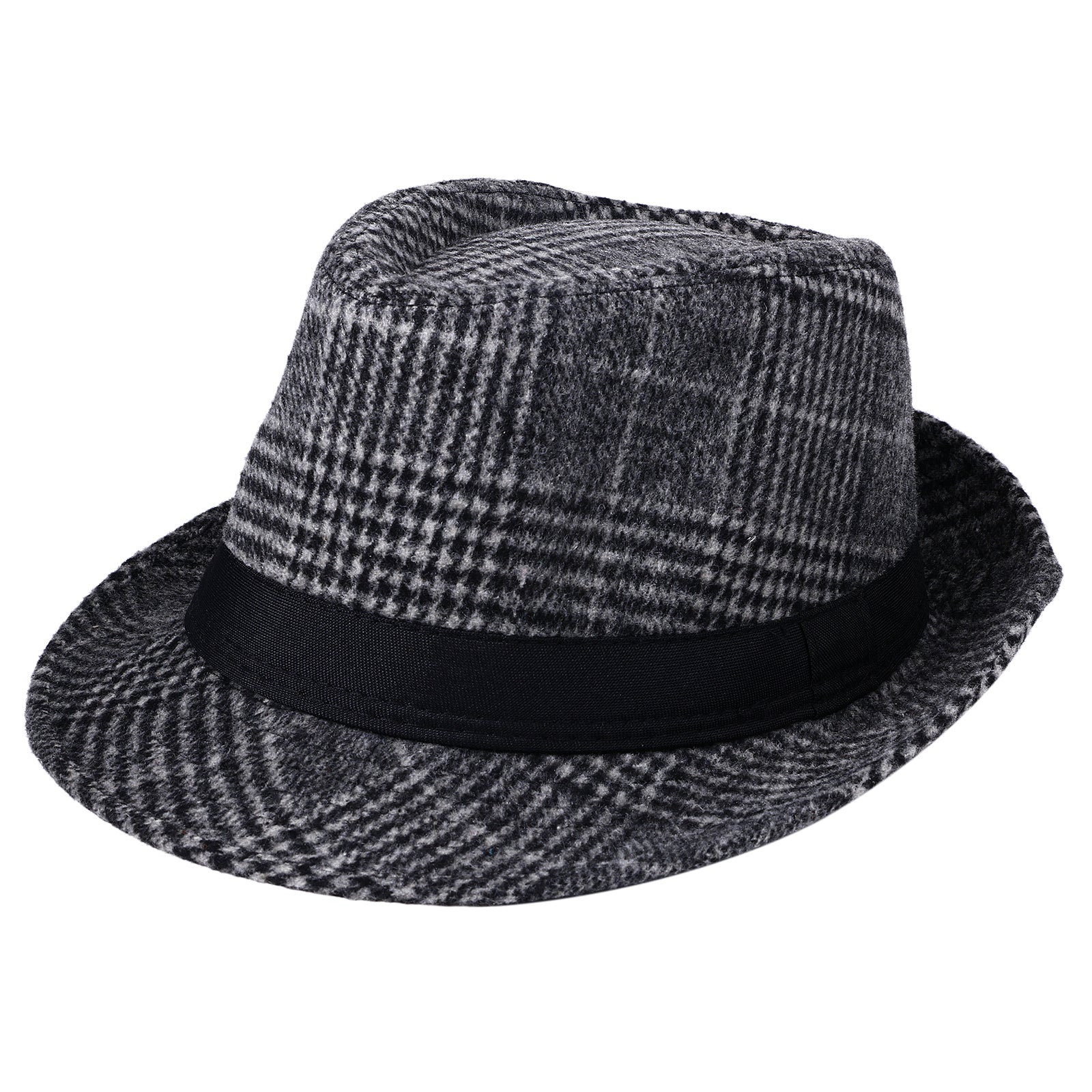 - Chapeau trilby Manhattan Gangster à carreaux classiques et motif à bandes