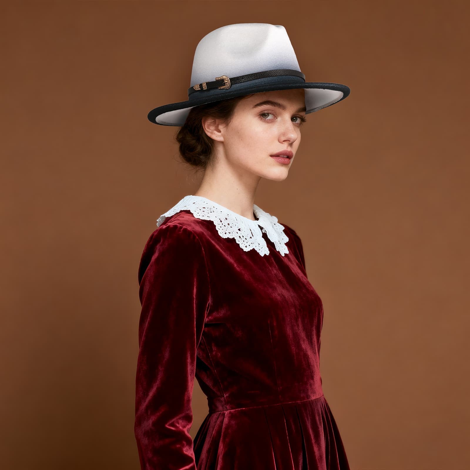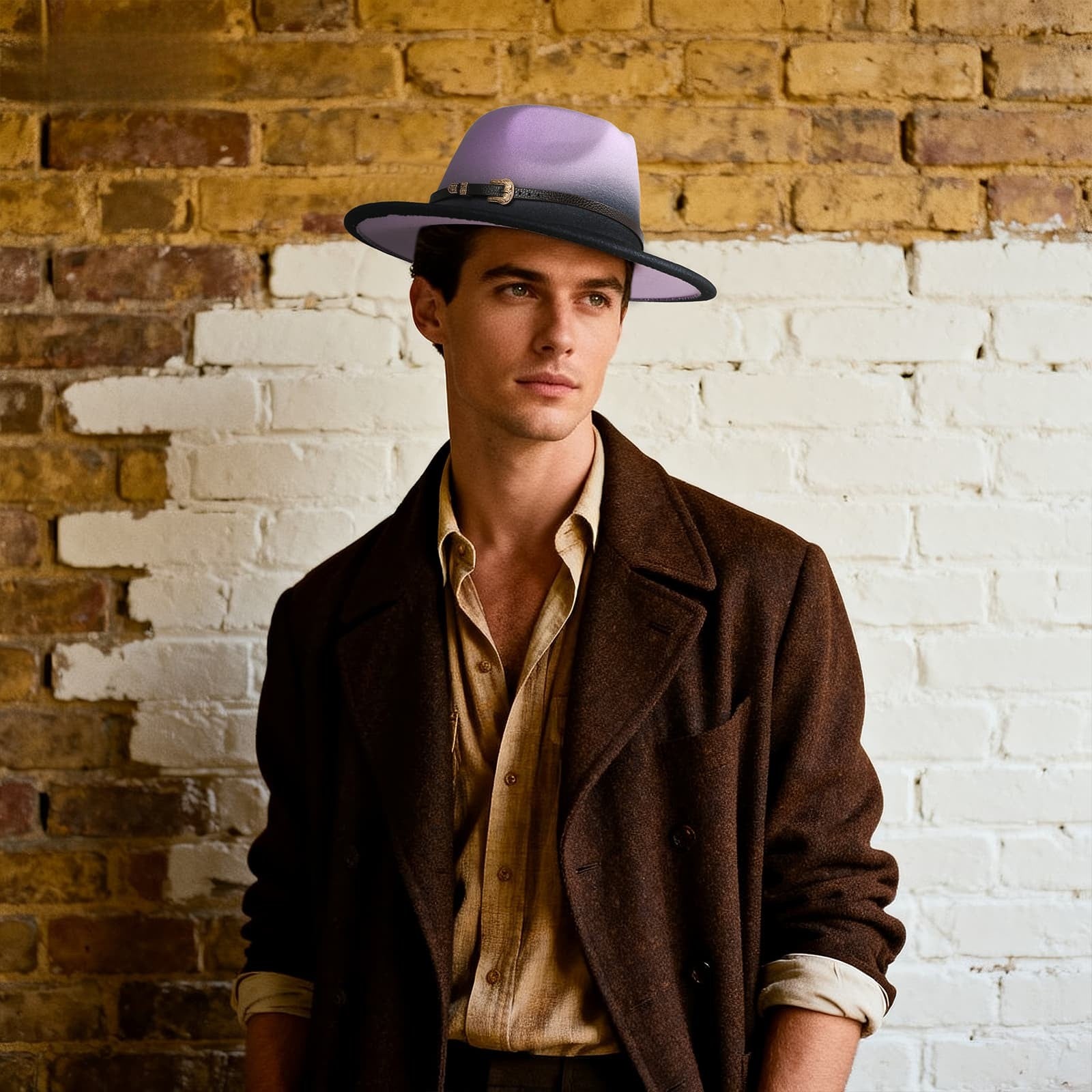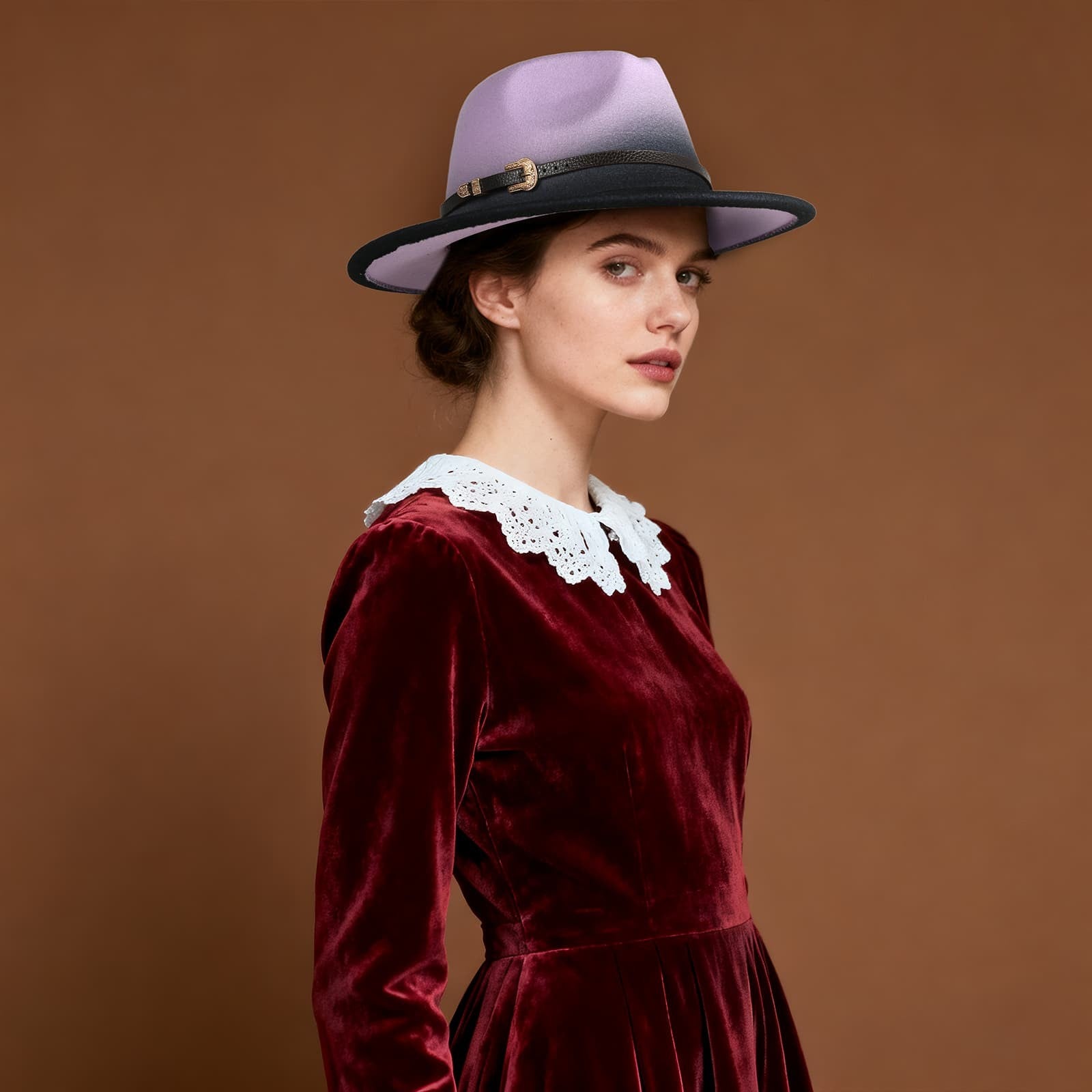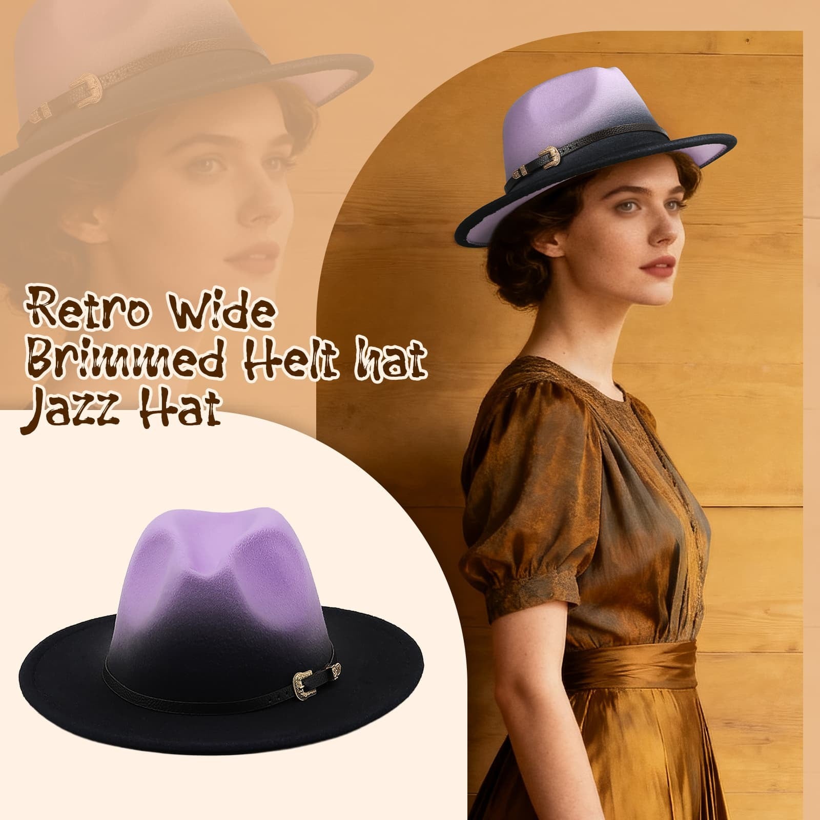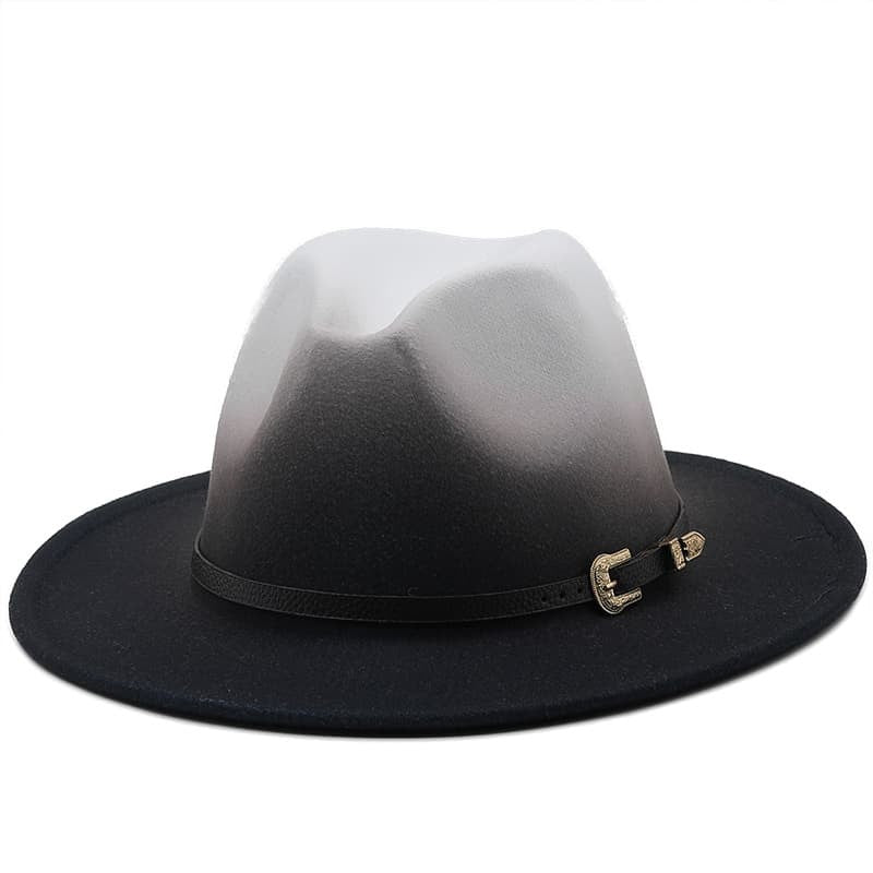 Chapeau de jazz rétro en feutre de laine à bord plat dégradé - Boniskiss