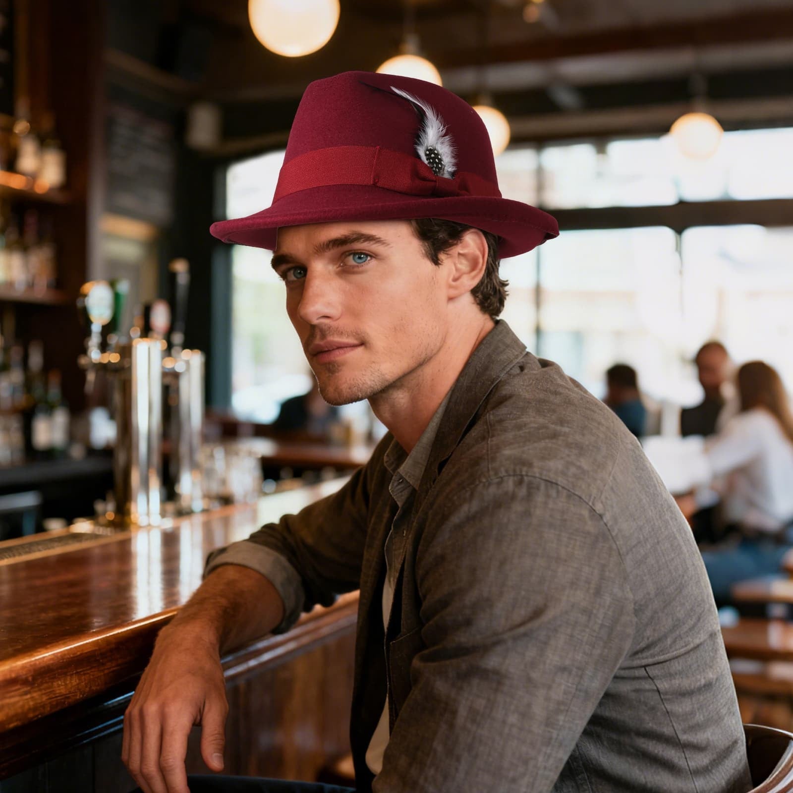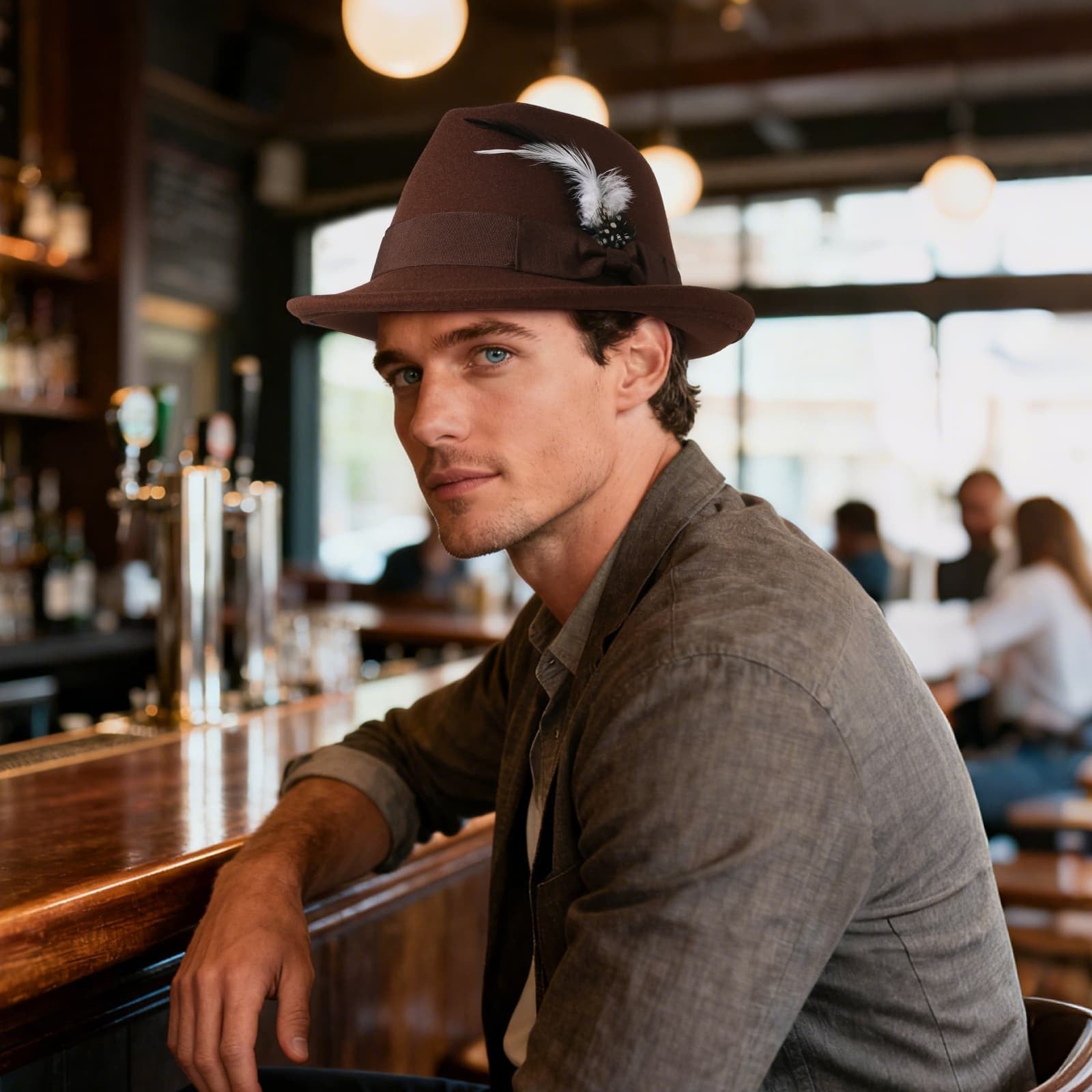 Chapeau Fedora Panama classique à bords courts avec plume - Boniskiss