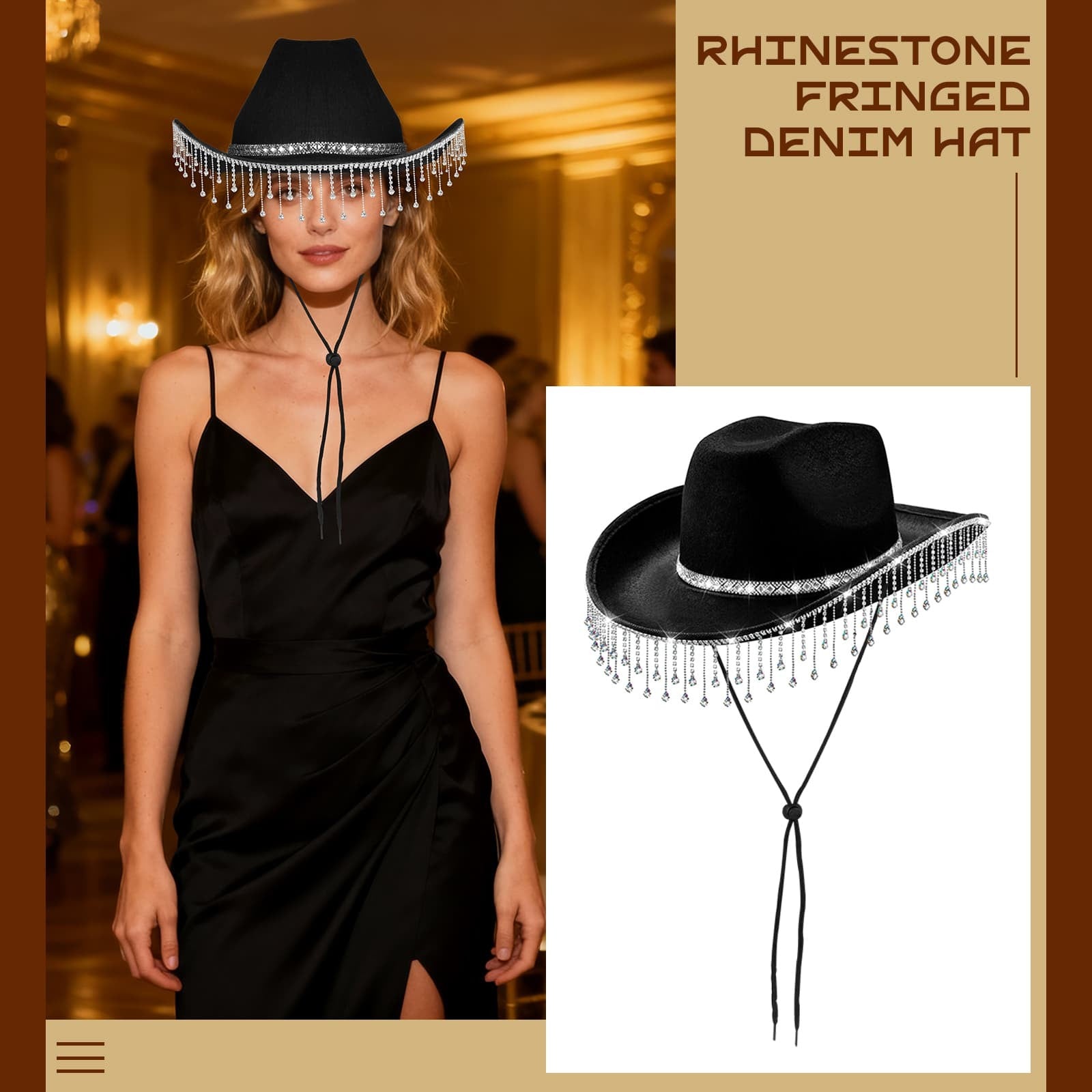 Chapeau de cowgirl disco western à franges et strass - Boniskiss