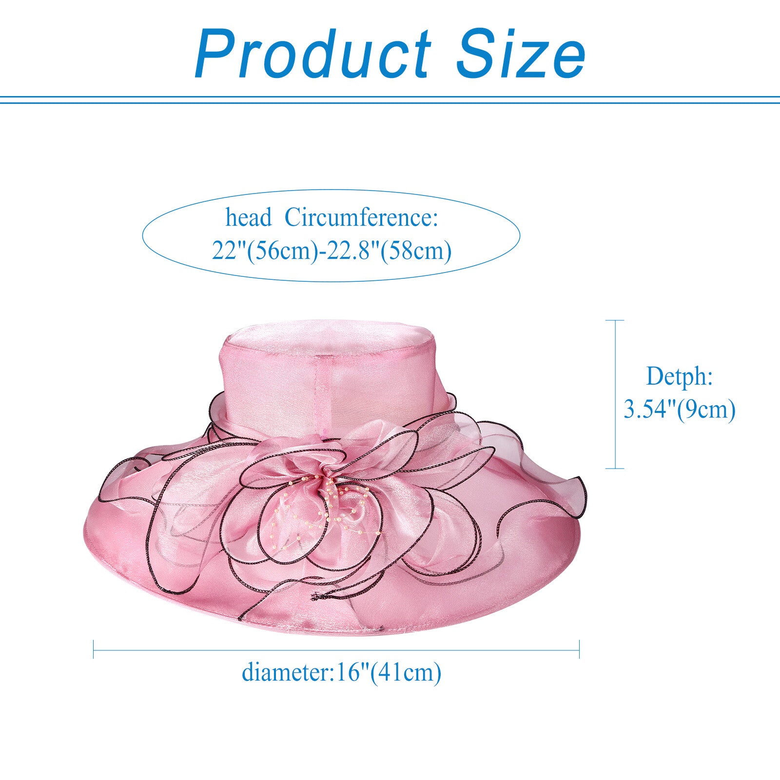 - CARACTÉRISTIQUES --- Fabriqué en organza, protection UV 50+. Ce chapeau derby élégant vous accompagnera partout. Doux et confortable, il est orné de fleurs raffinées, possède un large bord et un volant, pour une allure somptueuse et protège efficacement les joues du soleil. Léger et respirant, il offre une forme souple et résistante, pour un confort optimal.