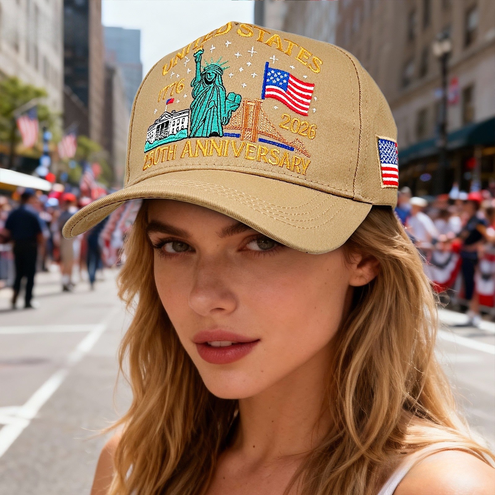 Centered on America's 250th anniversary, this baseball cap features embroidered elements like Statue of Liberty, White House and American Flag, highlighting historical commemorative significance. The 3D clear embroidery with superior texture shows excellent detail performance, making the pattern vivid and durable.