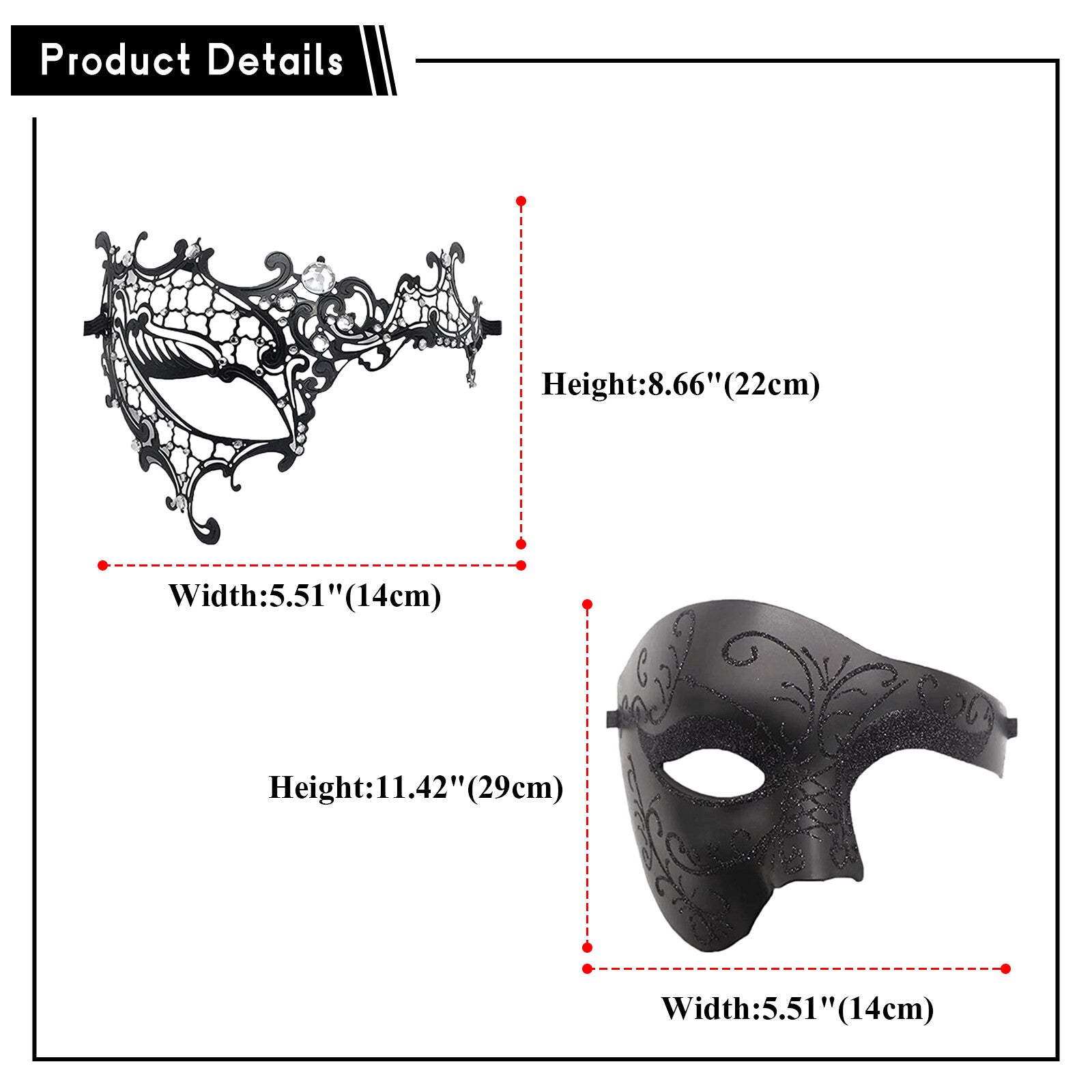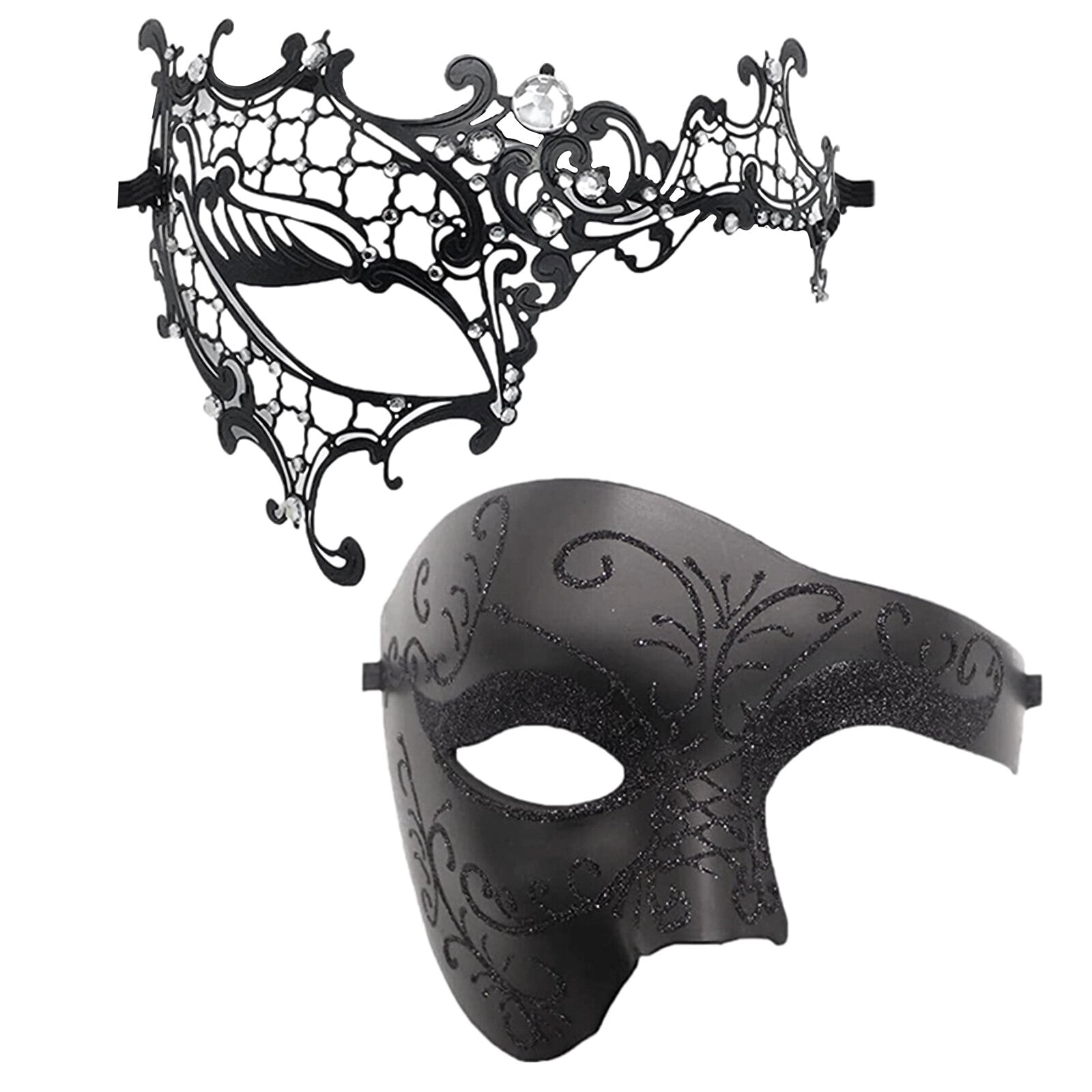 Boniskiss Couple's 2pcs Masquerade Ball Masks - Venetian Metal Mardi Gras Half Face Mask