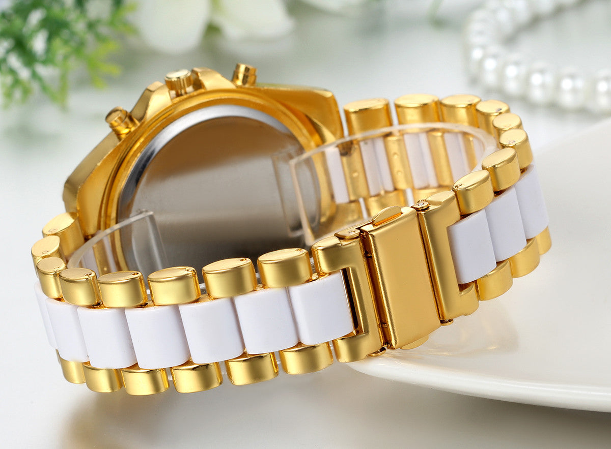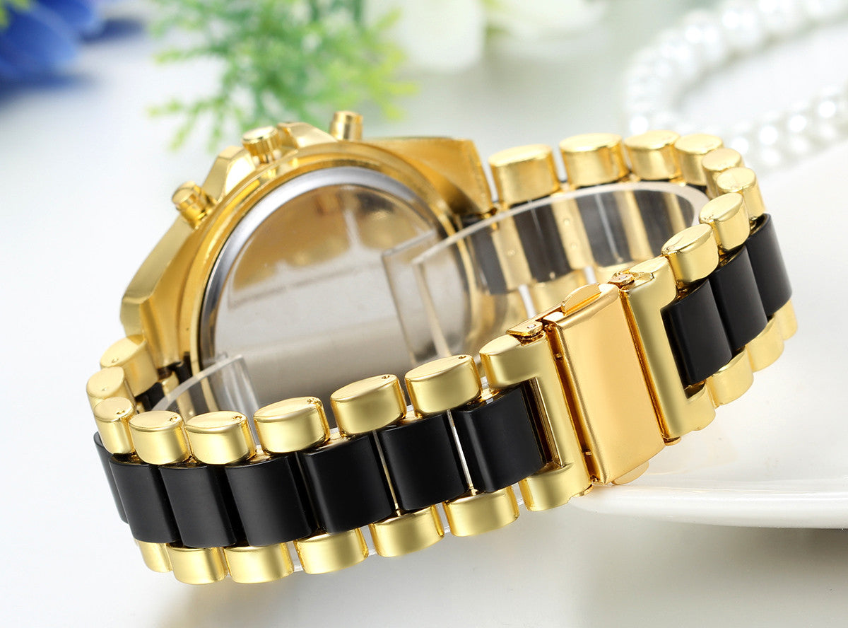 Boniskiss Birthday Gift Men's Roman Numbers Dial Two-Tone Stainless Steel Dress Watch