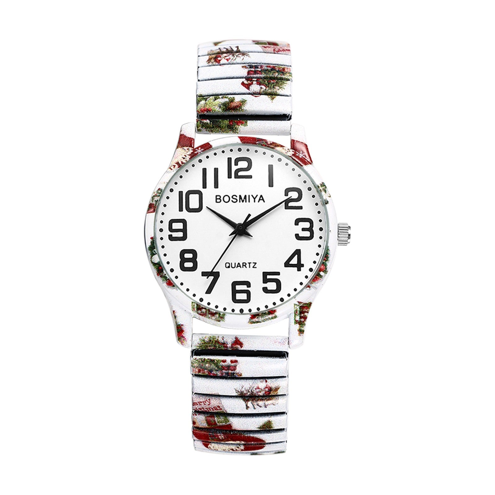 Boniskiss "Christmas Reindeer" Women's Boho Printed Elastic Band Wrist Watch