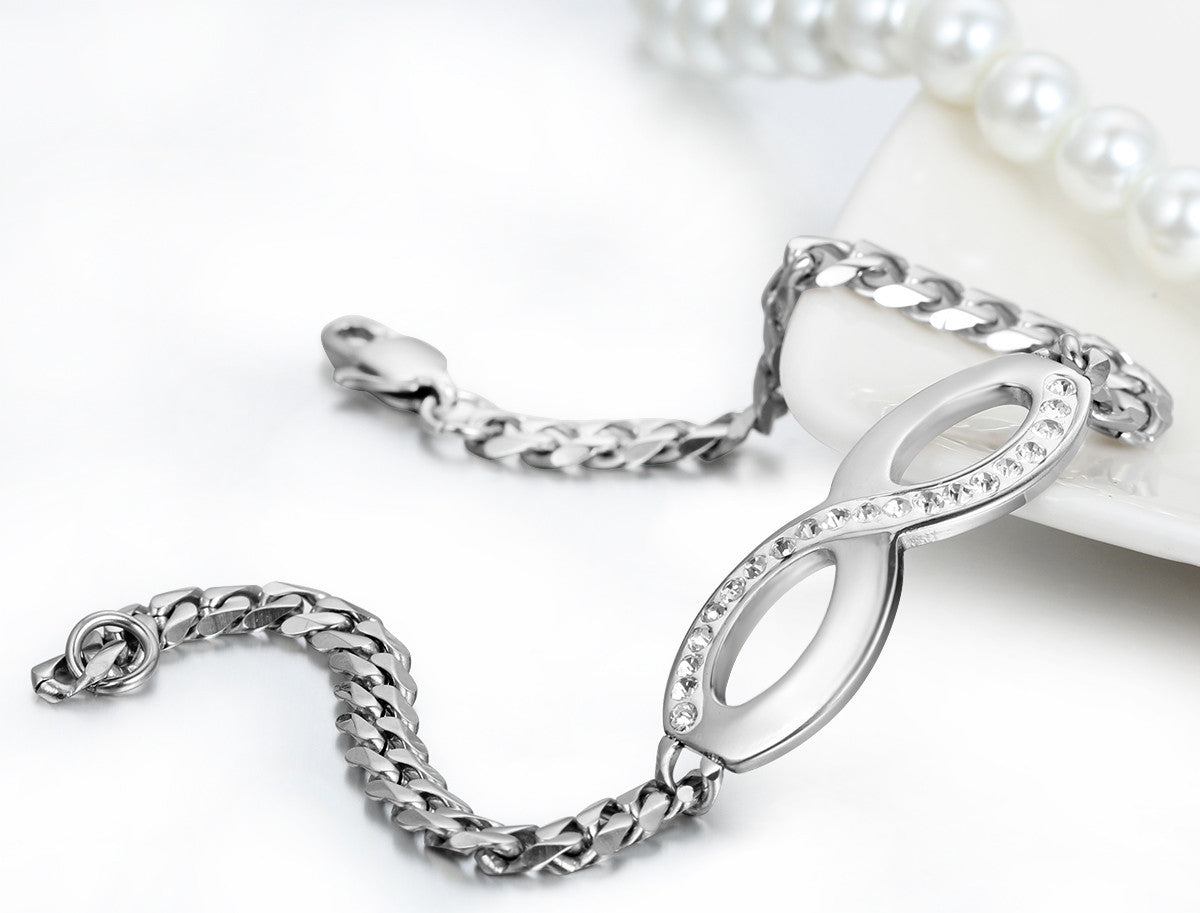 Boniskiss New Stainless Steel Interlocking Infinity Chain Bangle Figure 8 Bracelet 7.9 Inch Length - 5mm Width