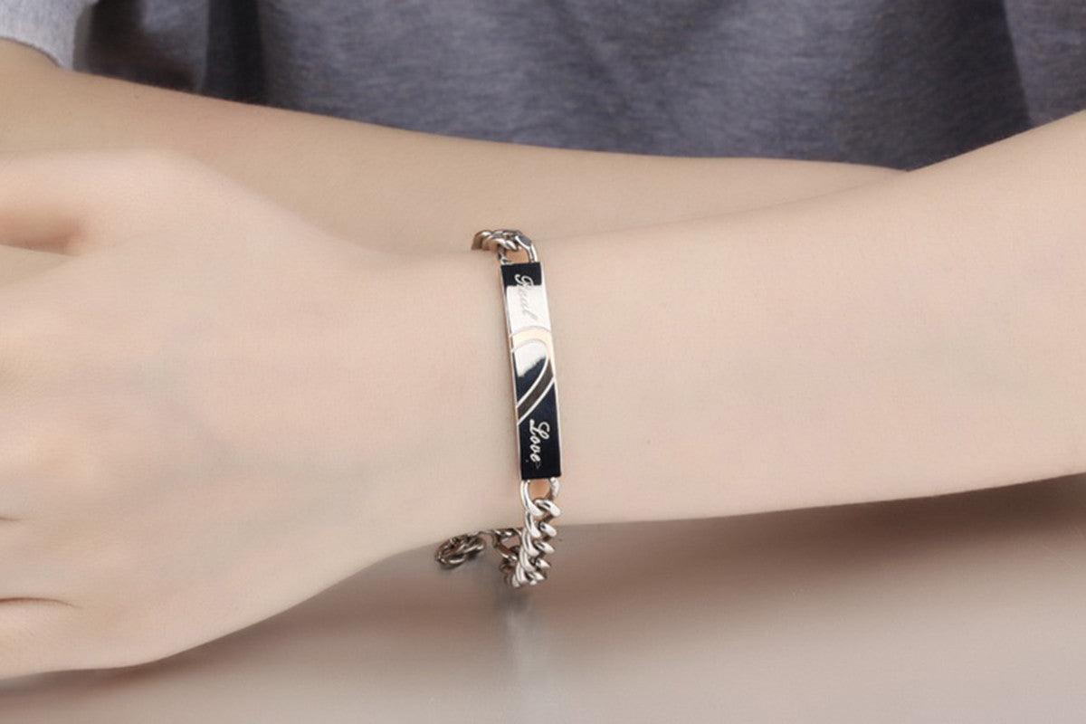 Boniskiss Men,Women's Real Love Heart Stainless Steel Bracelet Valentine Love Couples Wedding Engagement Promise