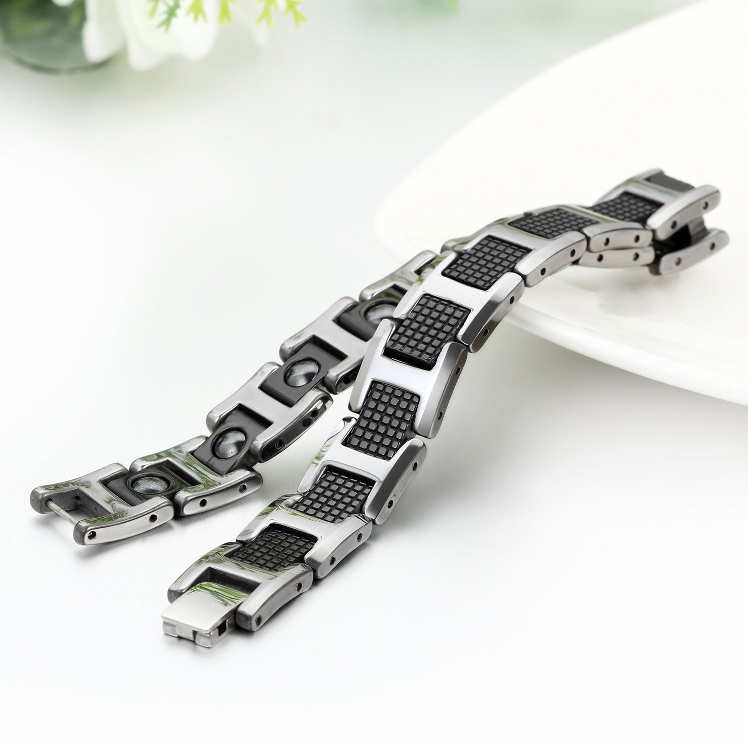 Boniskiss Mens Classic Charm Brief Health Fashion Tungsten Steel Bracelet Black