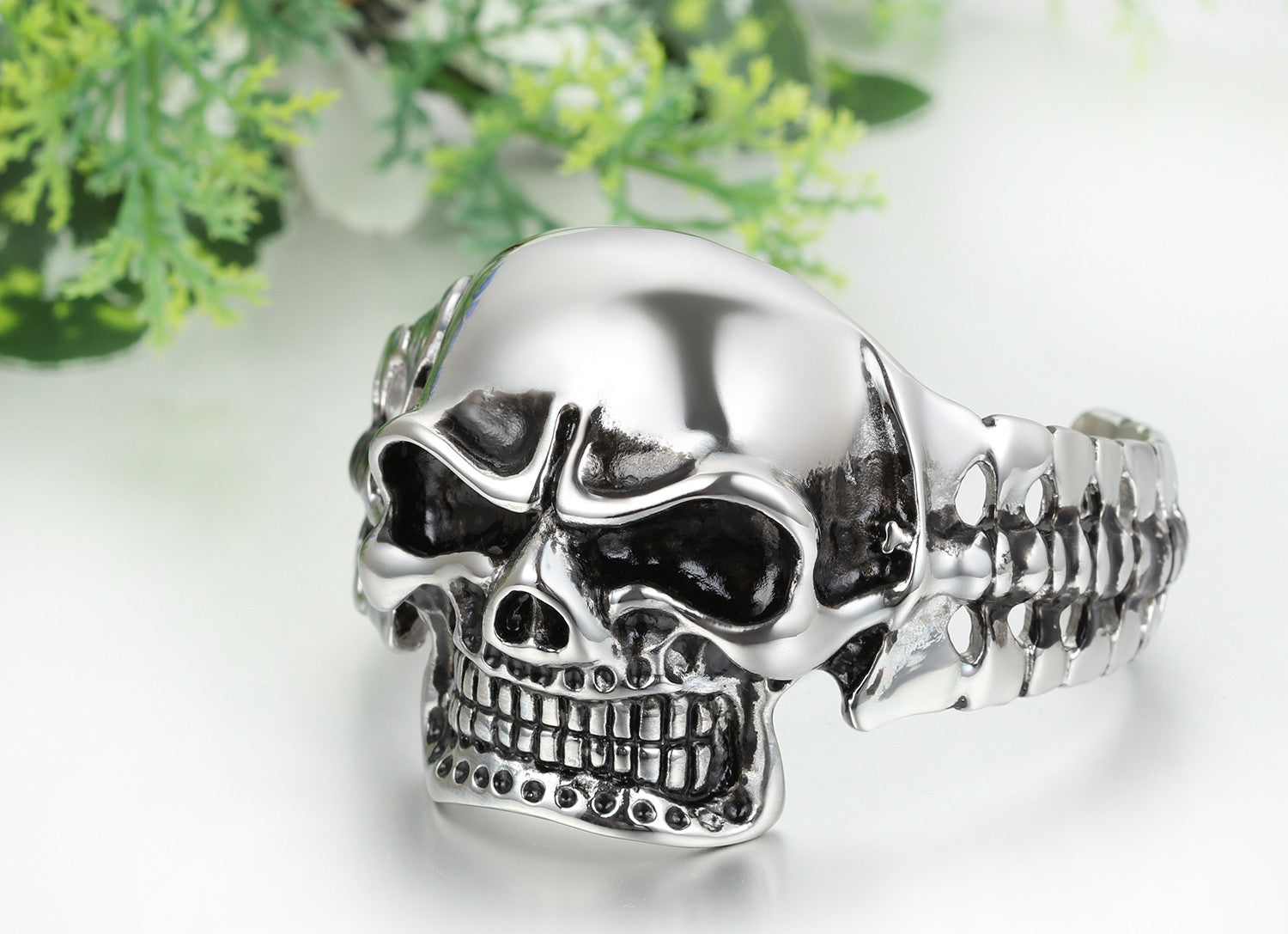 - Stainless steel bike skull bracelet for men.