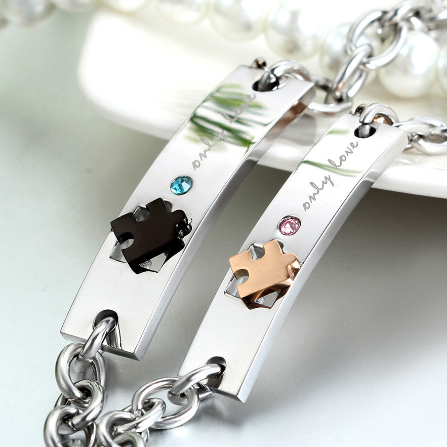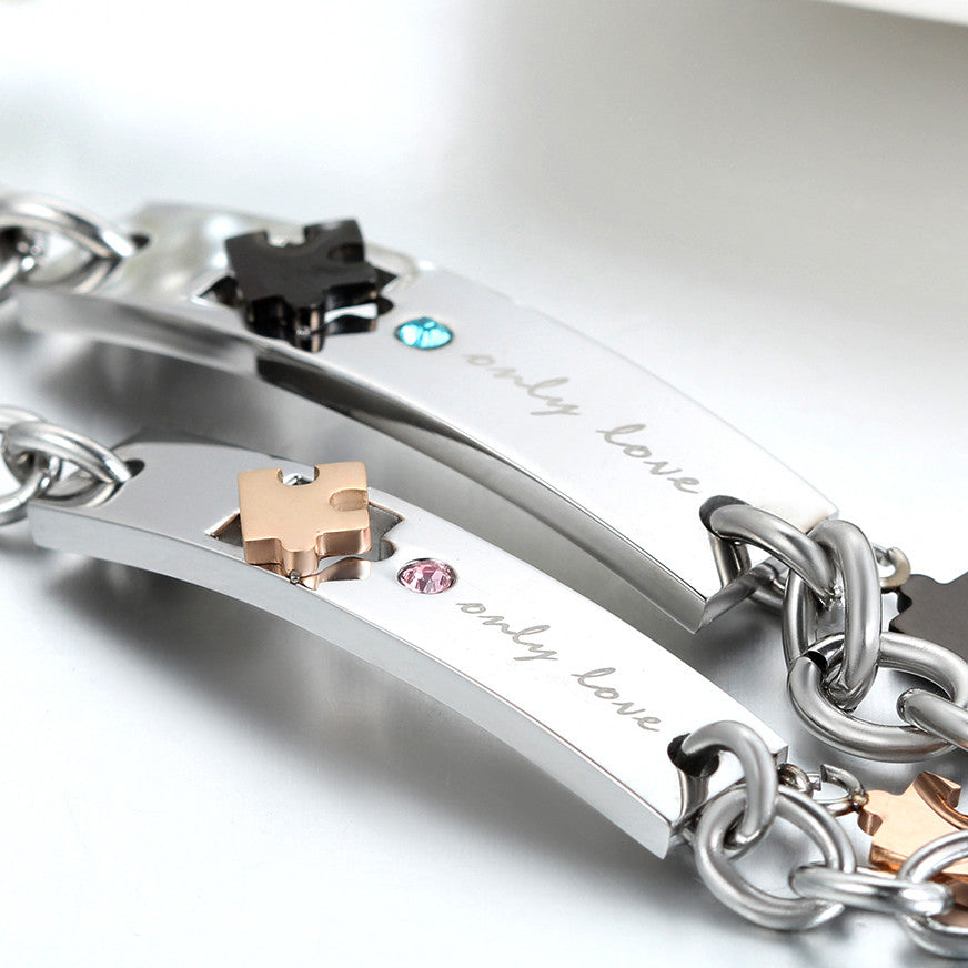 Boniskiss Mens Womens Stainless Steel Bracelet Link Wrist Black Silver Rose Gold Only Love Chain Elegant, Valentine's Gift