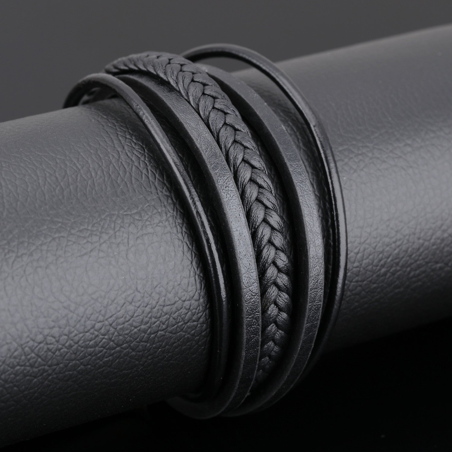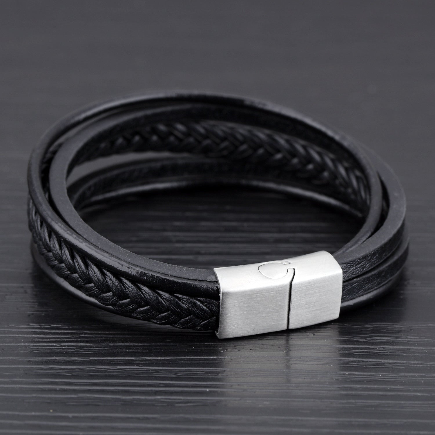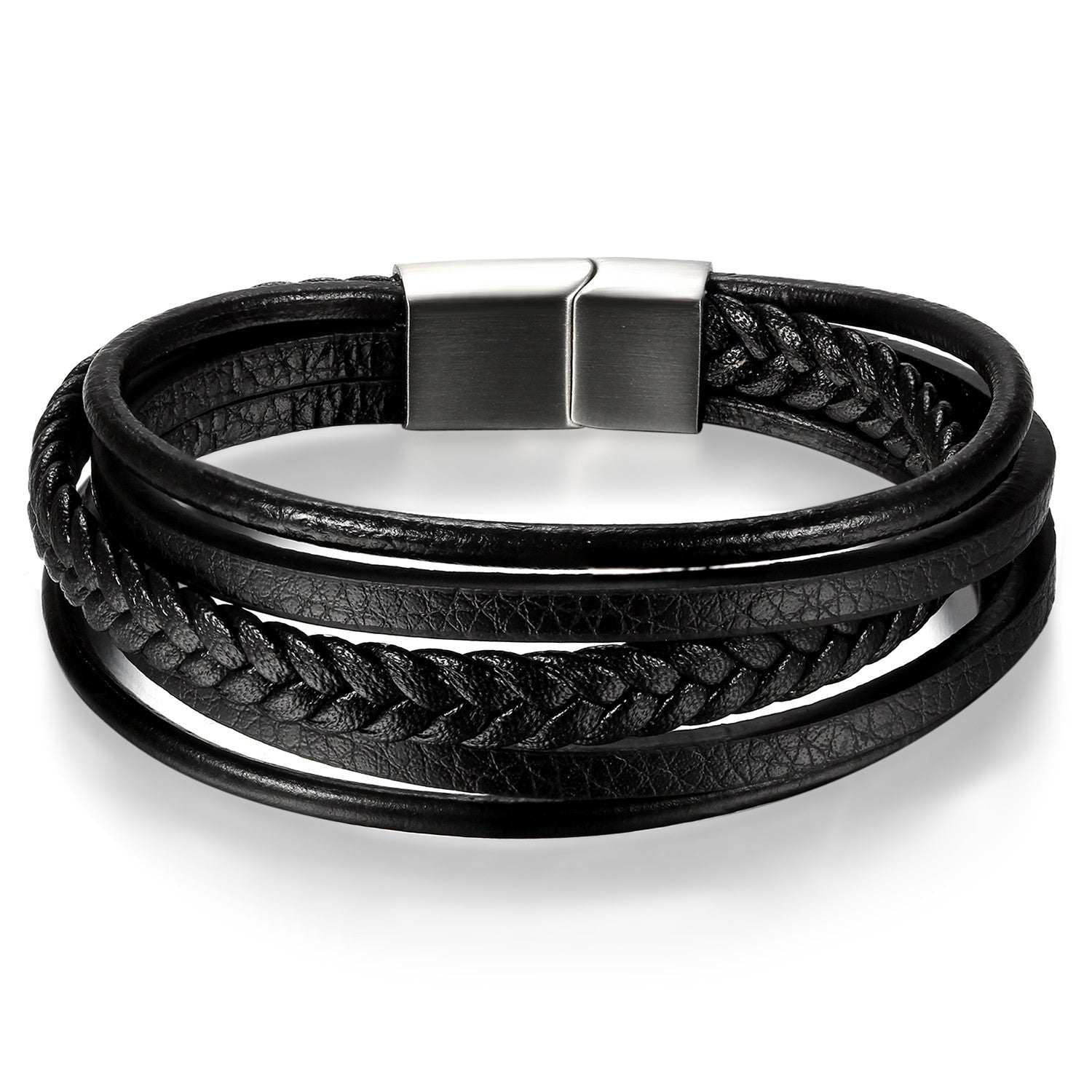Boniskiss Stainless Steel Bracelet with Braided Leather Rope for Men