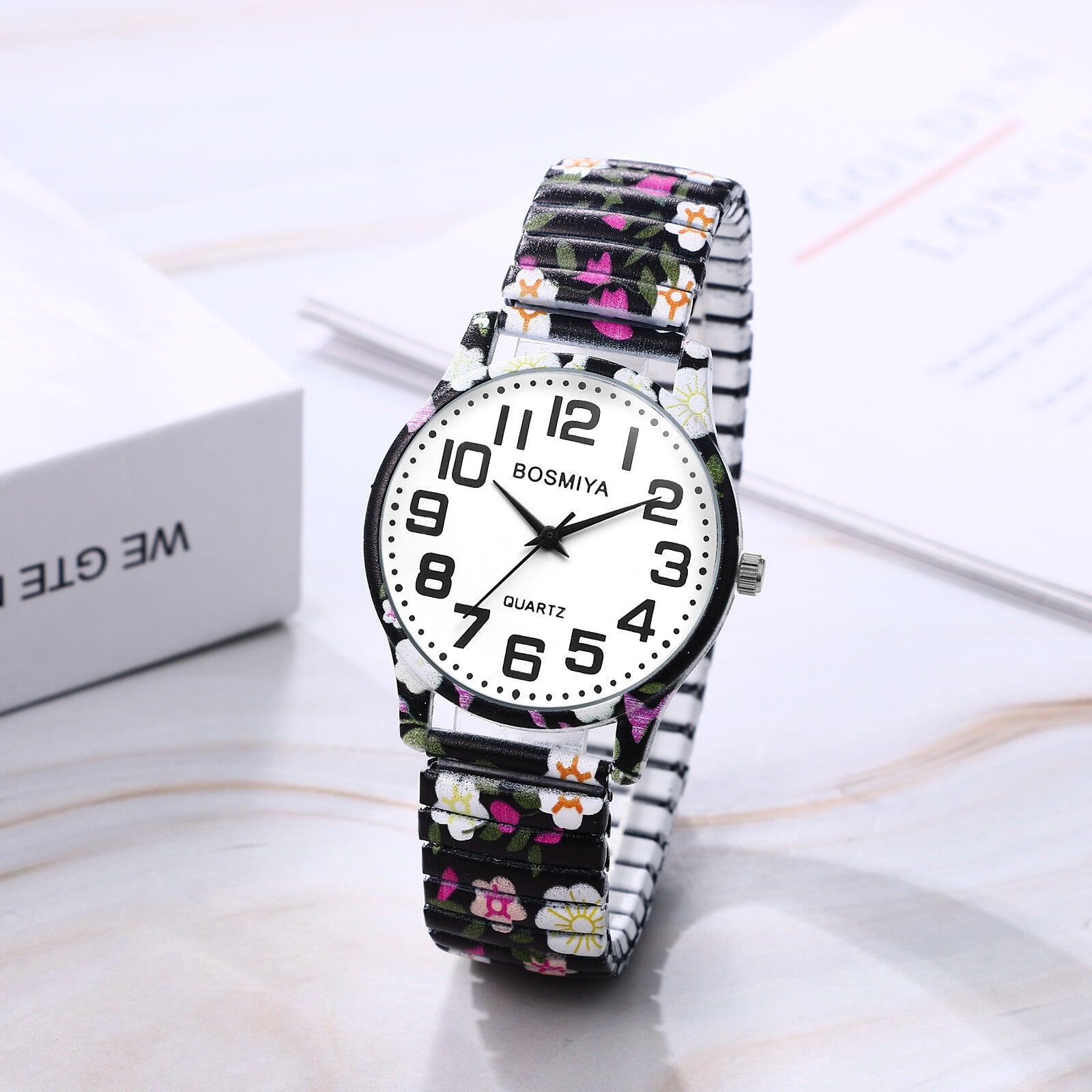 Boniskiss "Blossoms" Women's BohoPrinted Elastic Band Wrist Watch