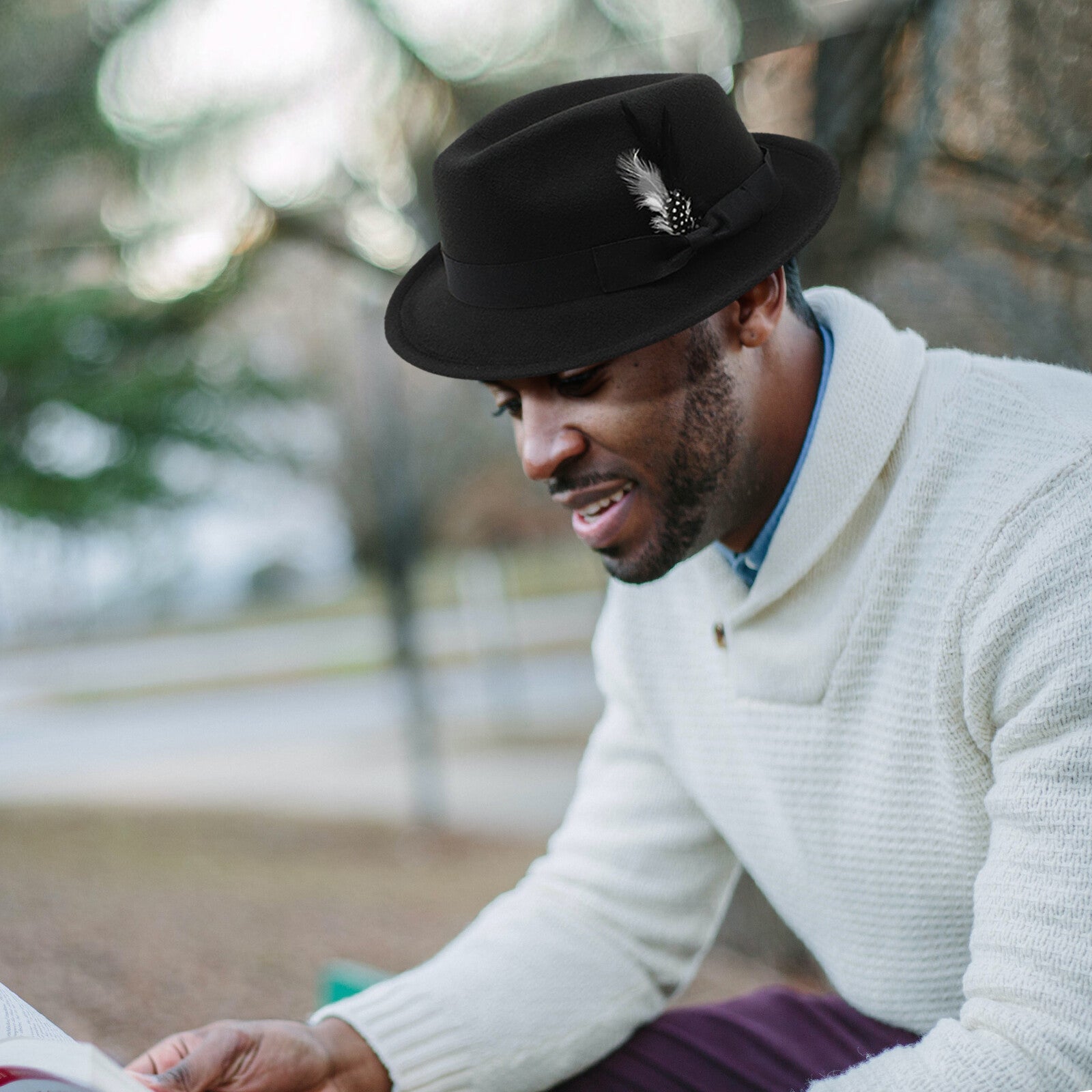 Classic Fedora Hat Short Brim Felt Feather Hat | Size M-L- Boniskiss