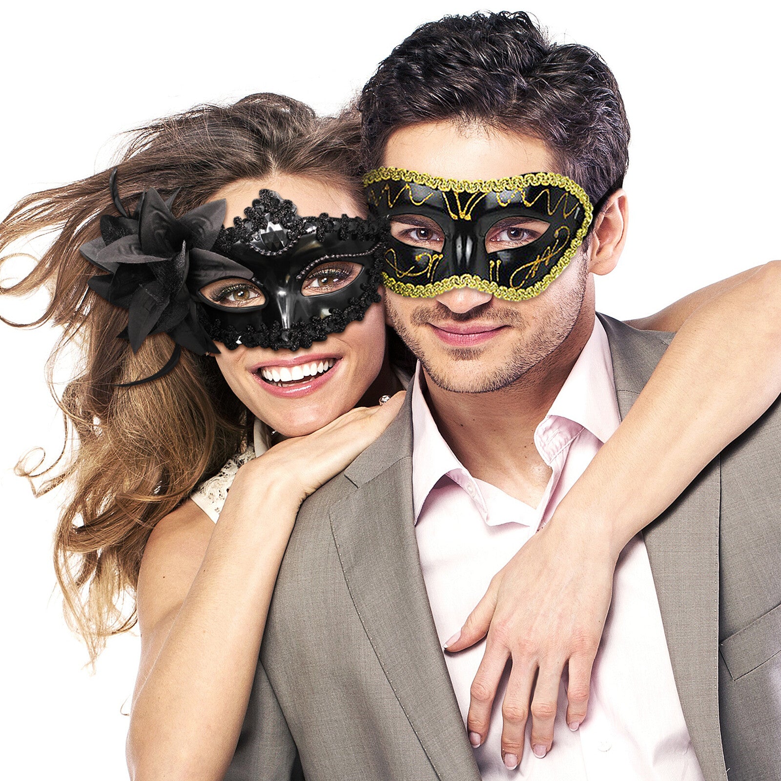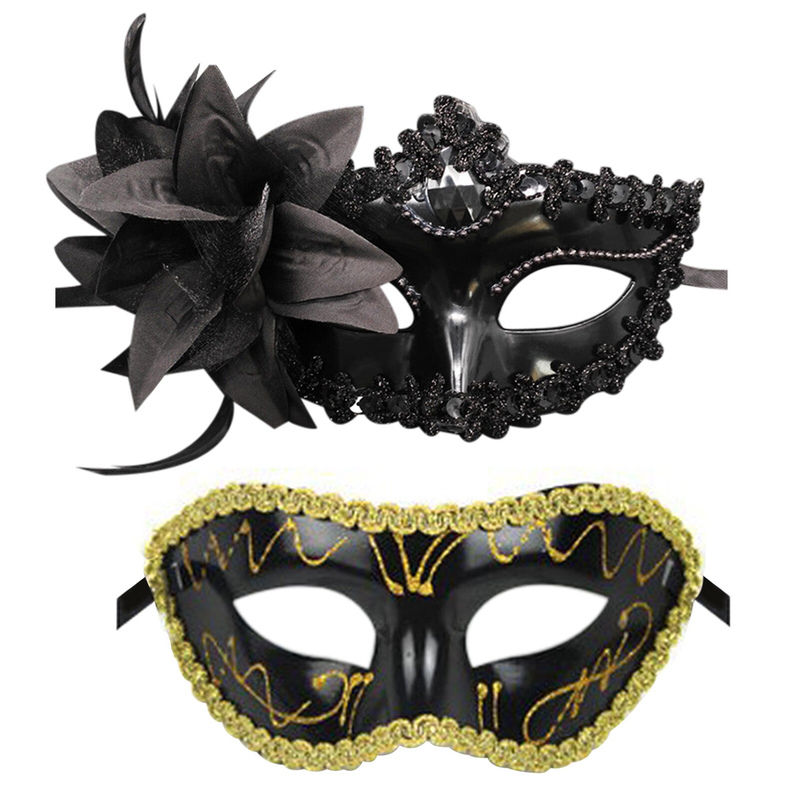 Boniskiss 2PCs Couple Venetian Lily Mask - for Ball Mardi Gras Masquerade Wedding Party Prom