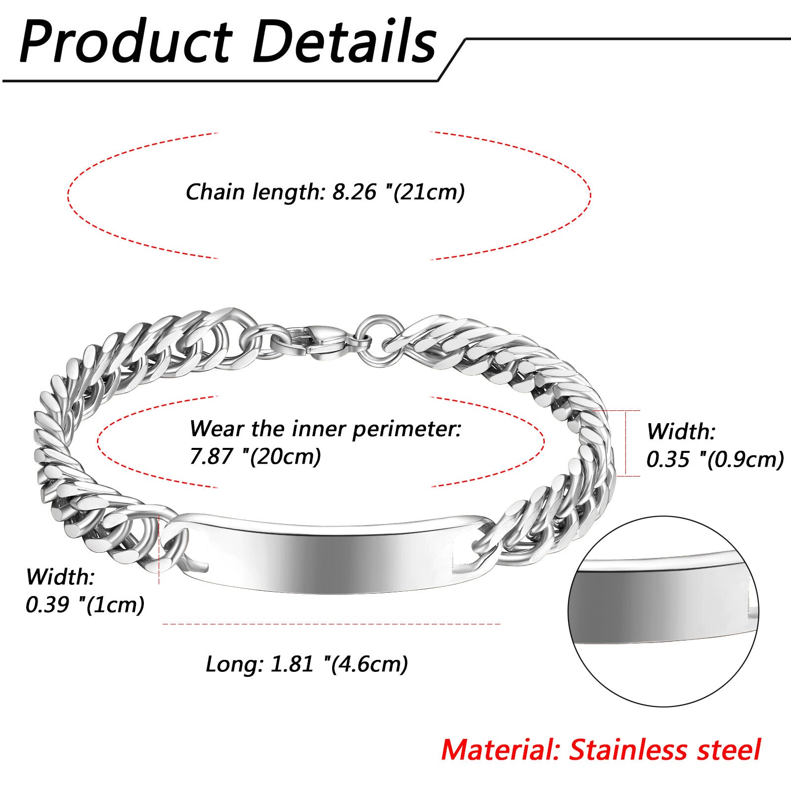 Chain length*width: 8.26"(21cm)*0.35"(0.9cm)