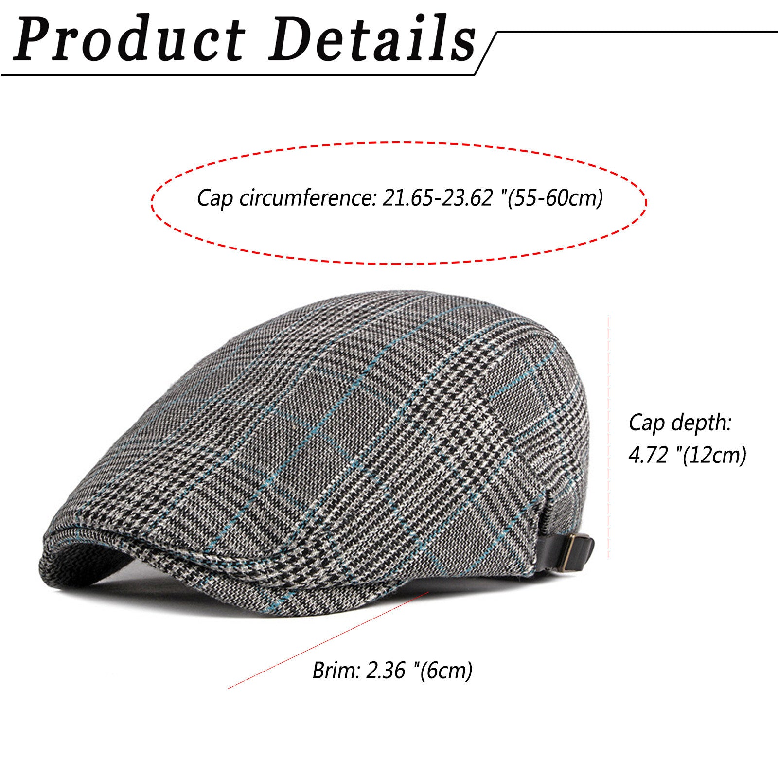 - Plaid design: Hat Girth: 21.65-23.62"(55-60cm), Hat Depth: 4.72"(12cm), Brim: 2.36"(6cm), Weight: 85g
