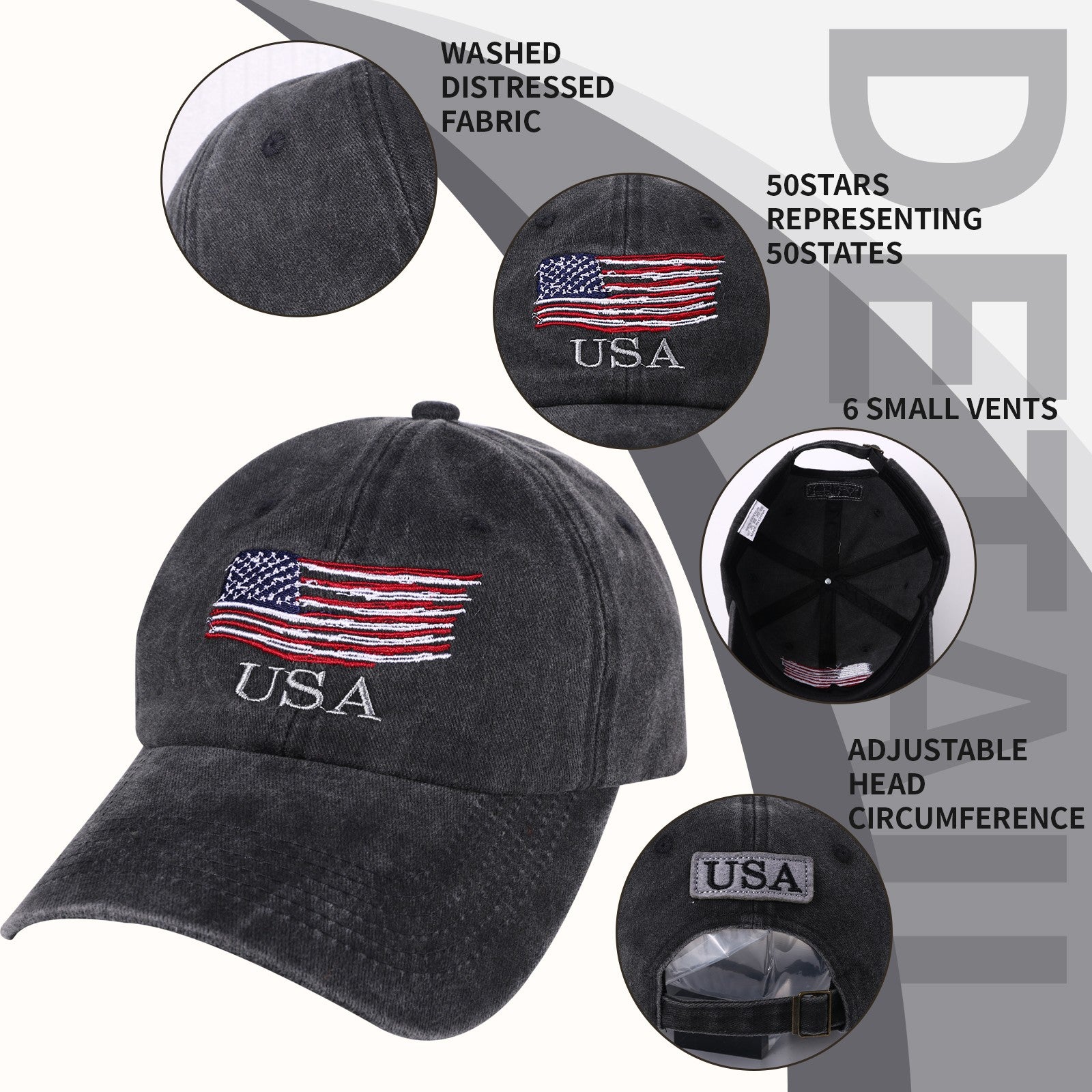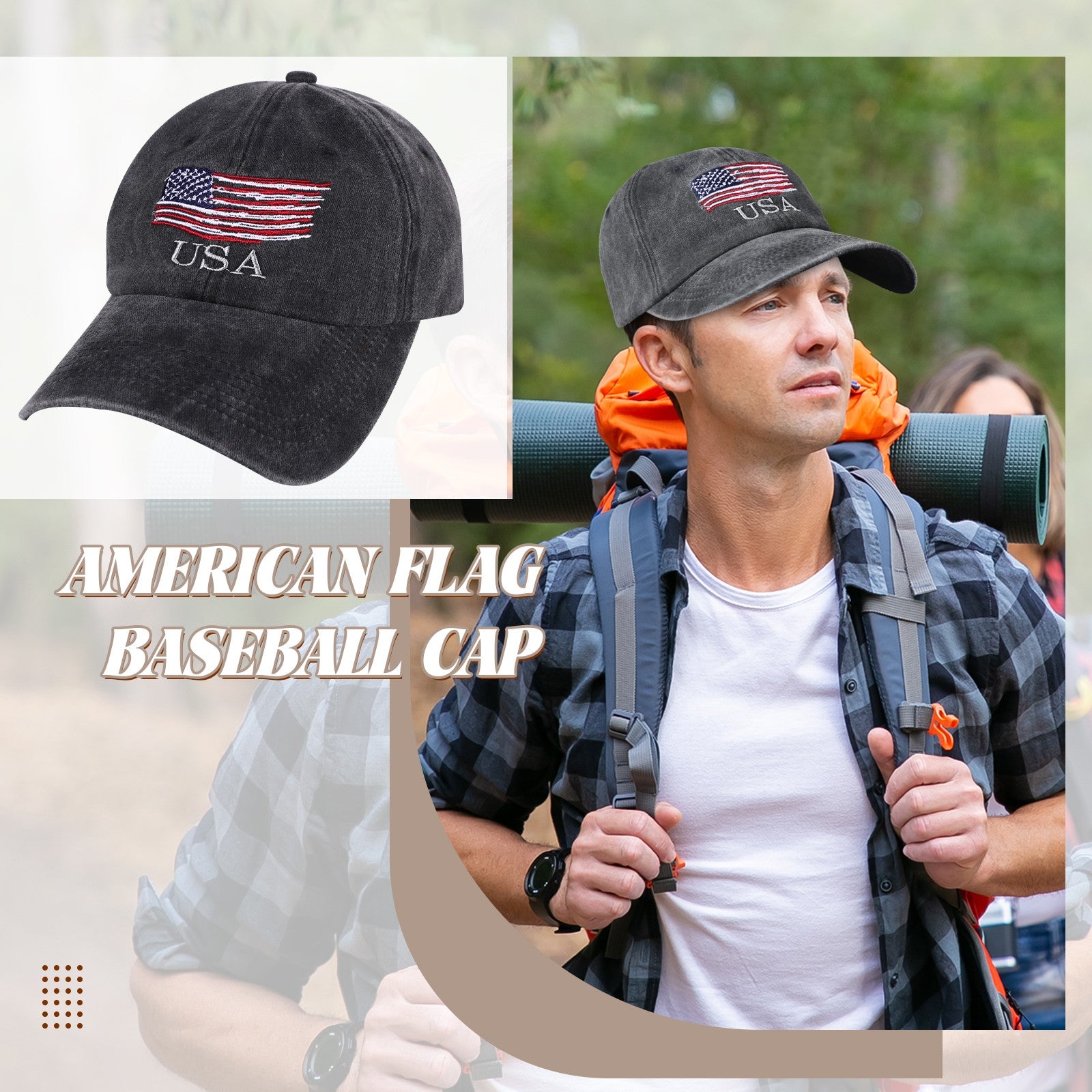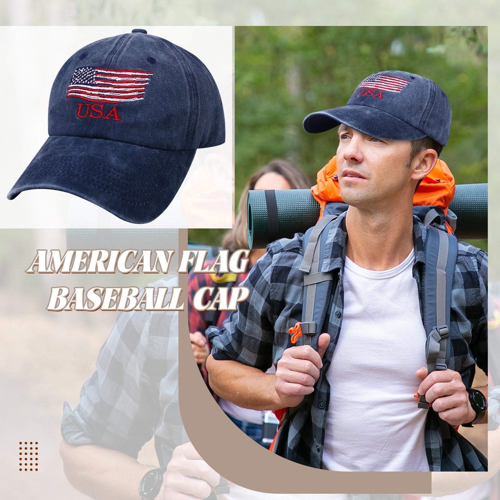 Washed American Flag Baseball Cap Retro Adjustable Cap Trucker Hat - Boniskiss