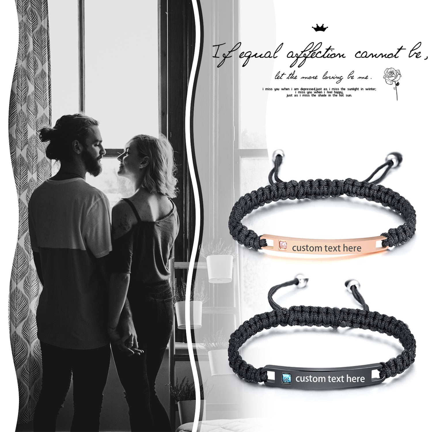2PCs Customized Couple‘s Adjustable Leather Stainless Steel Bracelet - Boniskiss