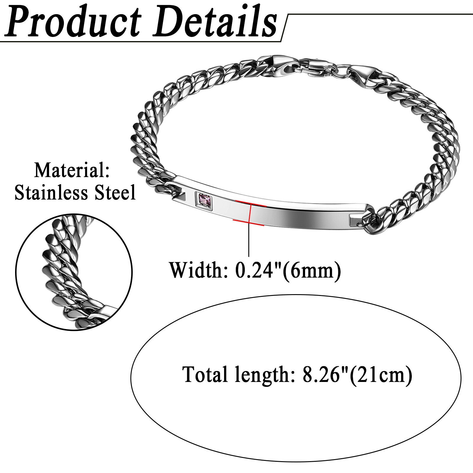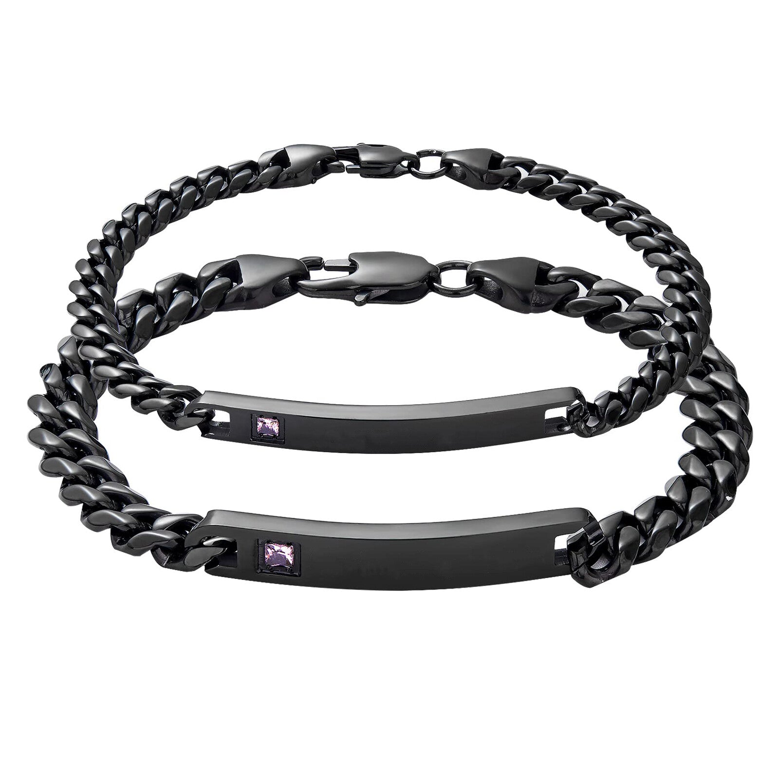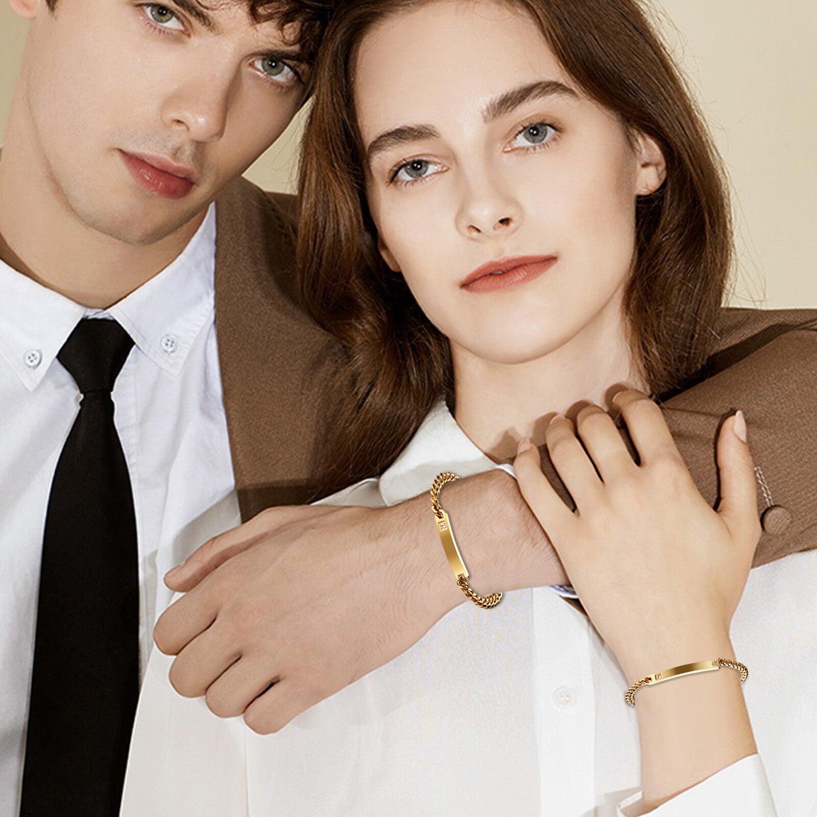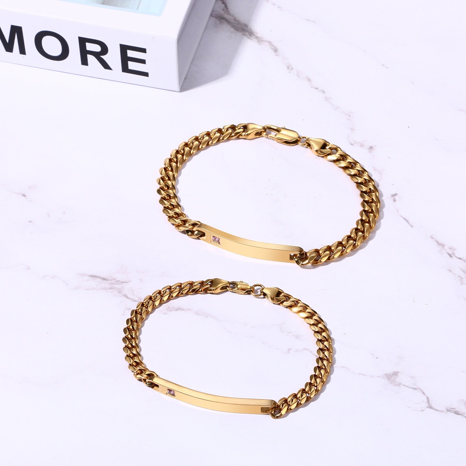 2PCs Couple's Personalized Stainless Steel Cuban Link CZ Bracelet - Boniskiss