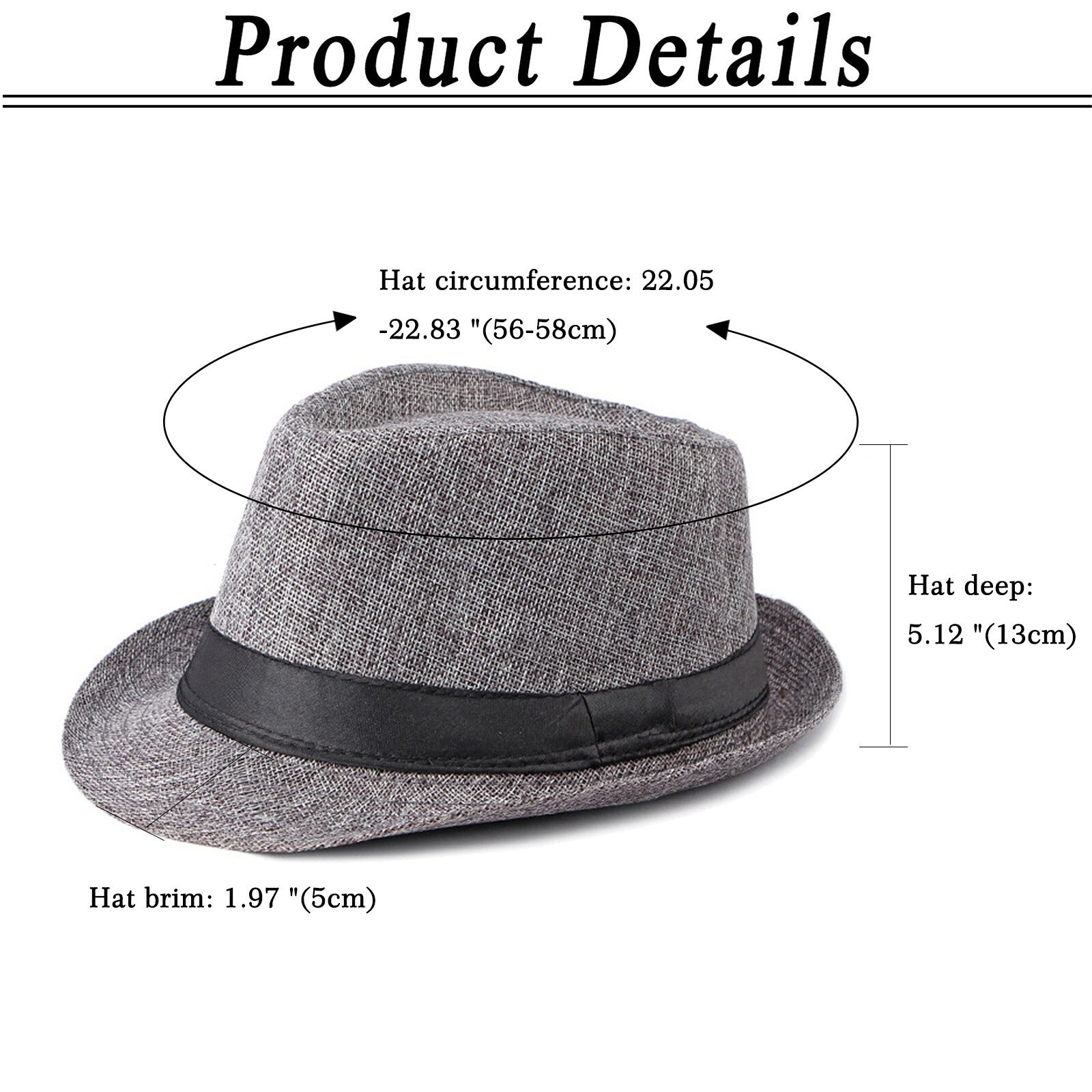 - Hat depth:5.12"(13cm)