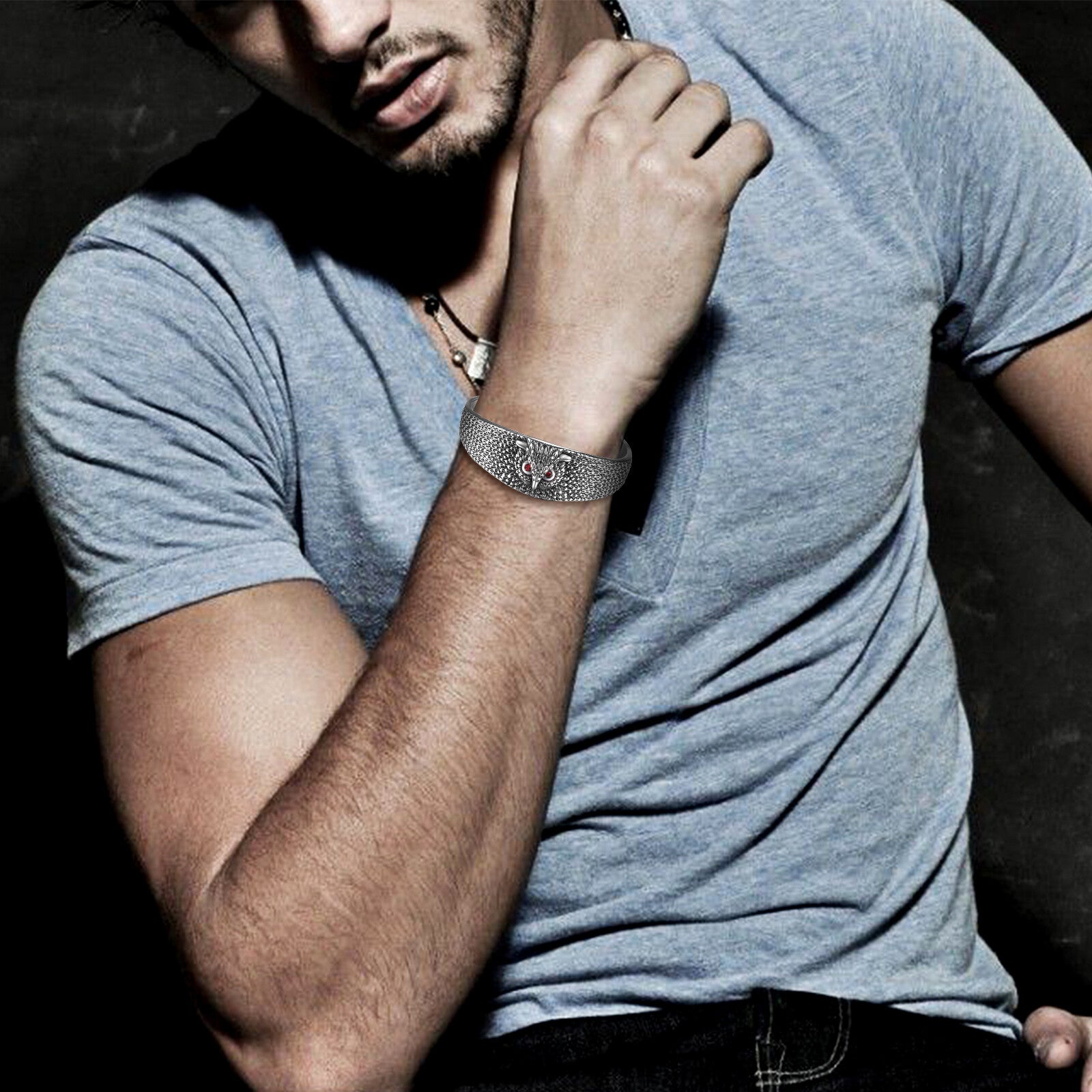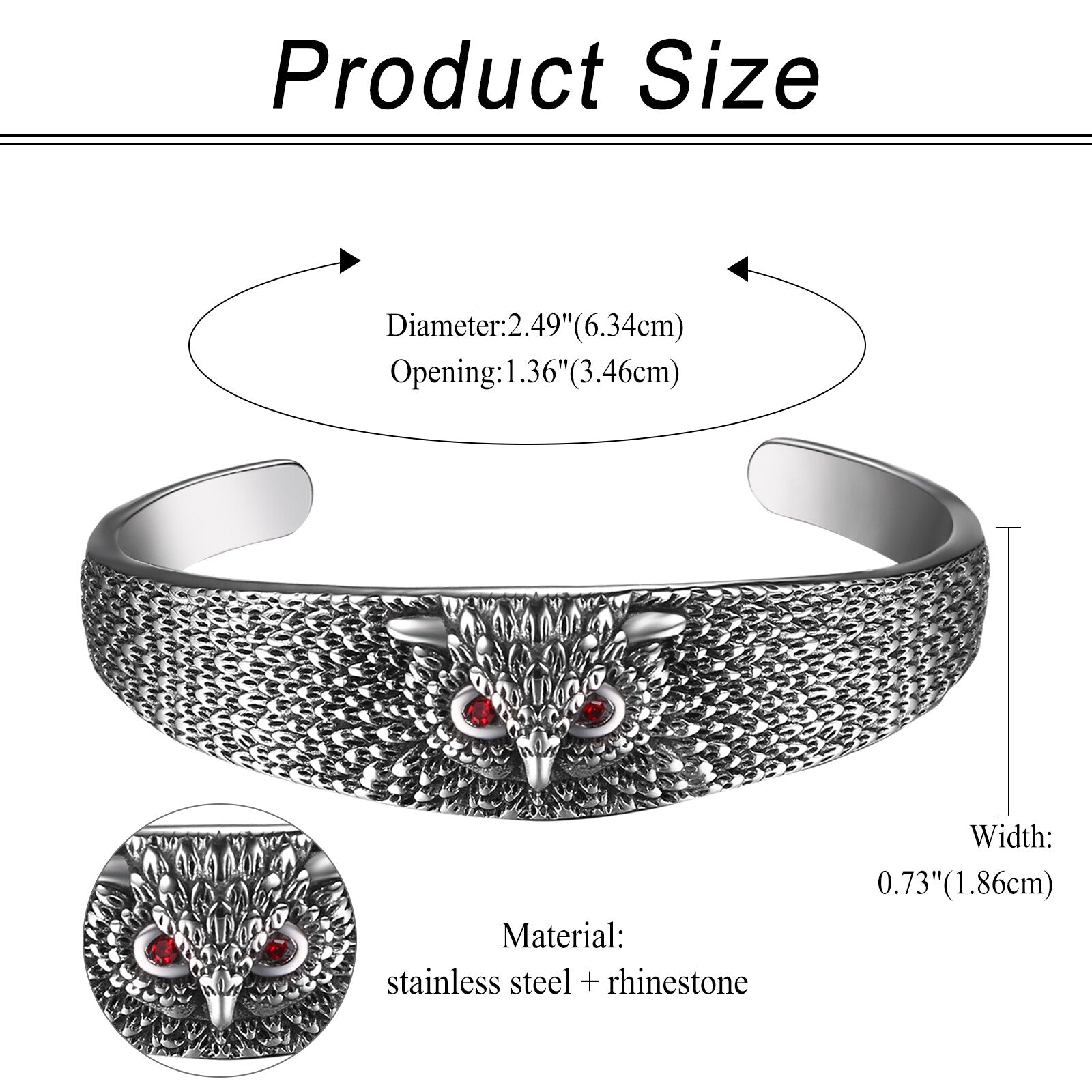 Boniskiss Carved Vivid Owl Amulet Open Cuff Bangle Stainless Steel Bracelet Viking Jewelry For Men