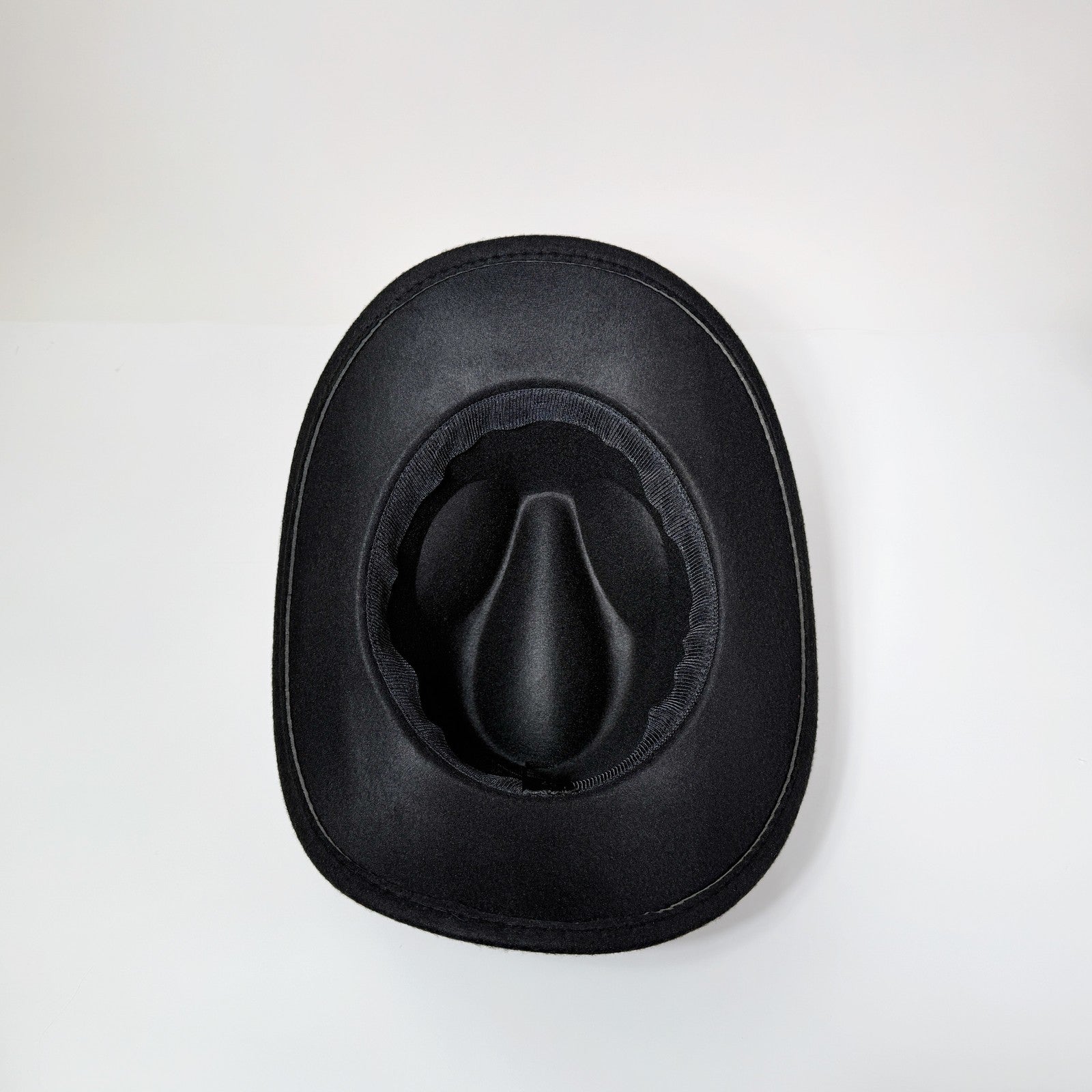 Crafted from polyester fabric that mimics wool felt, the hat offers excellent warmth and stiffness, maintaining its three-dimensional shape effortlessly. Featuring a retro metal carved decorative band, it adds a tough yet delicate touch with authentic Western style. The classic wide curved brim not only flatters various face shapes but also provides reliable sun protection, blending functionality and aesthetics.