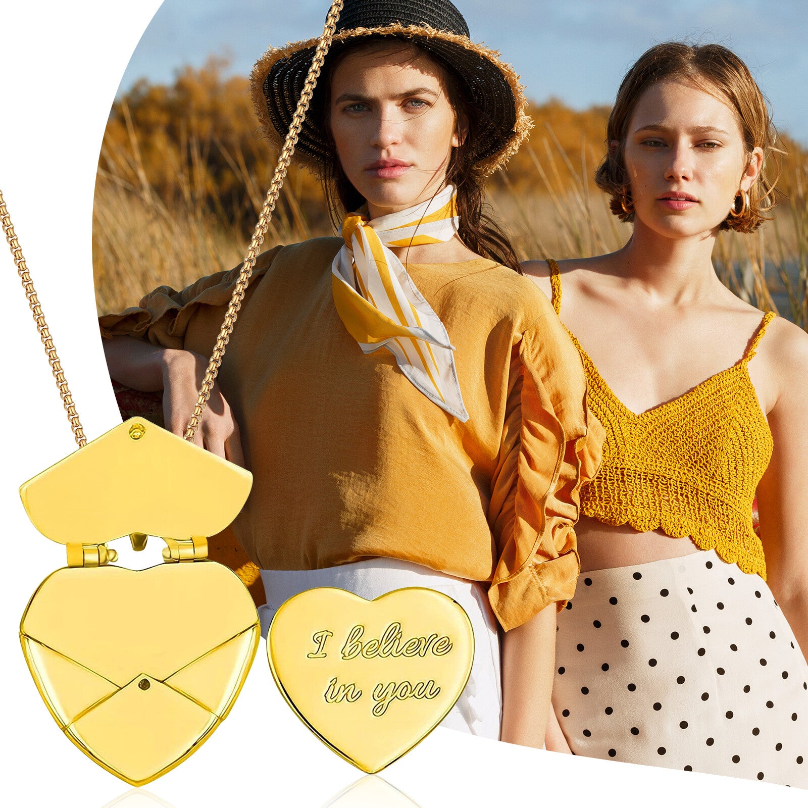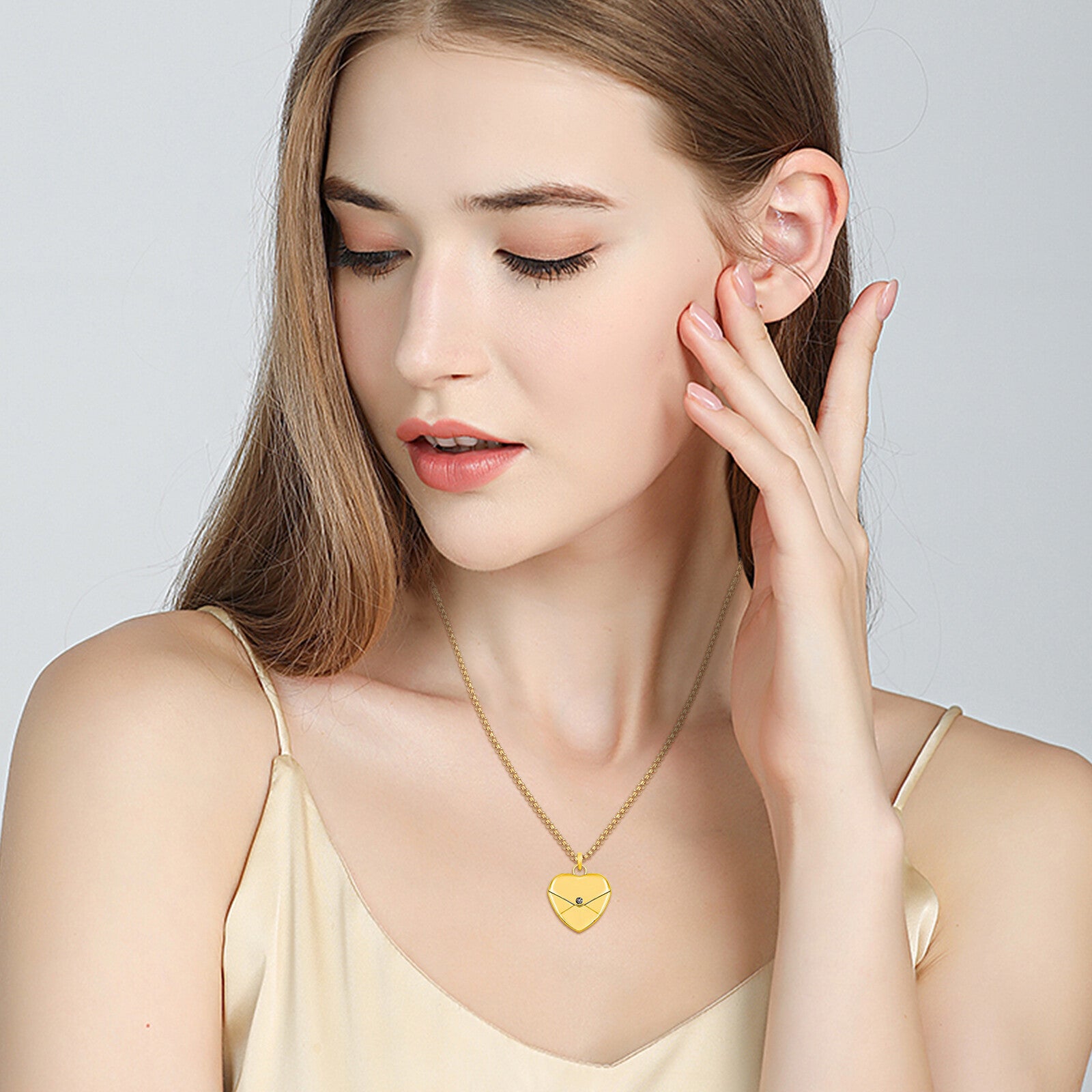 Customized Envelope Heart Necklace Stainless Steel Message Locket Pendant - Boniskiss