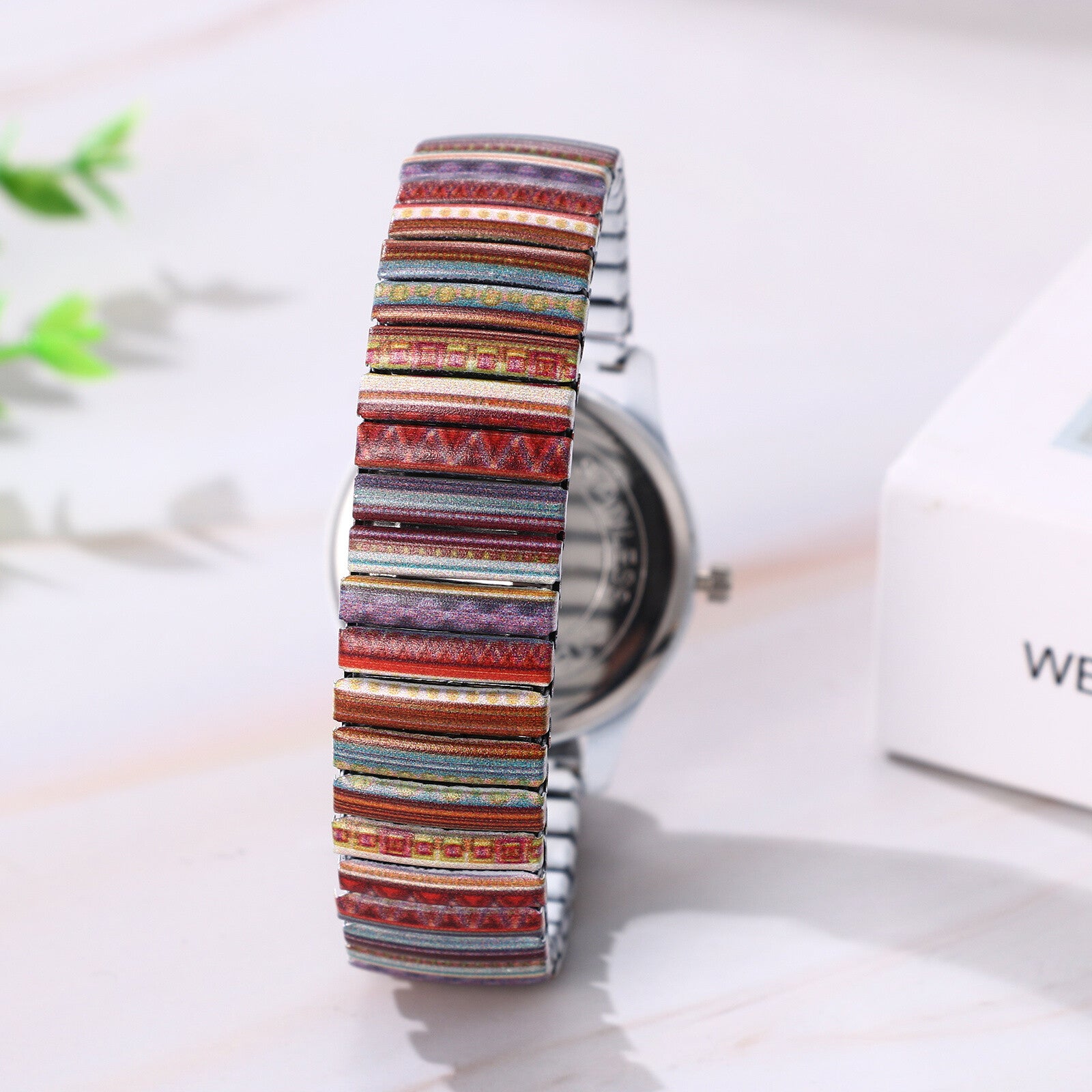 Boniskiss "Dunes" Women's Boho Printed Elastic Band Wrist Watch