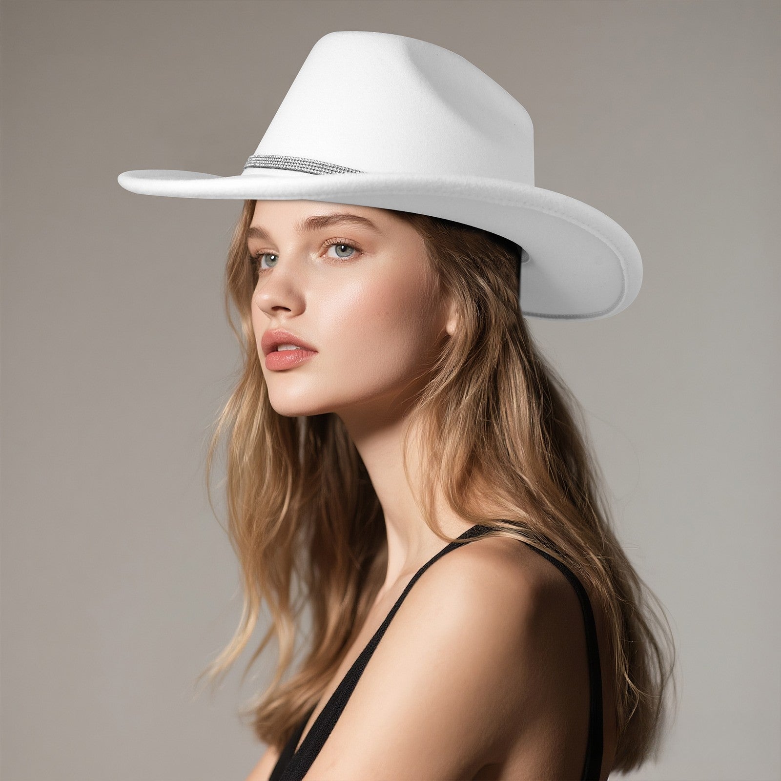 Put on this hat, and the warm texture of the wool-like fabric blends perfectly with the sparkling rhinestones. It balances the coolness of Western style and the glamour of bling elements, instantly giving you an aura of "confident, eye-catching, cool and delicate". It elevates your outfit's personality and makes you look "on the cutting edge of fashion with unique charm".