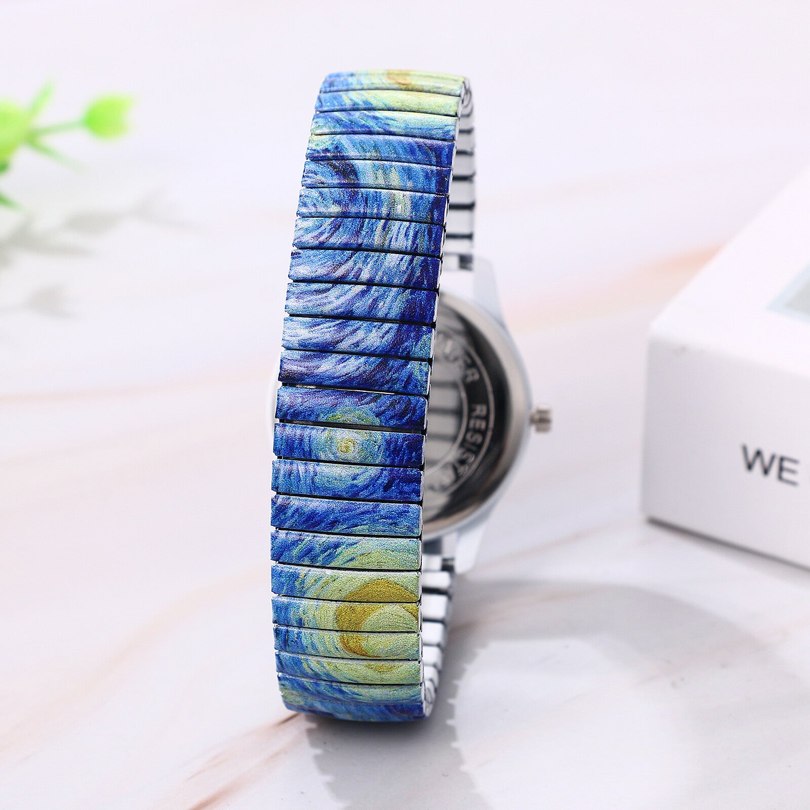 Boniskiss "Starry Night - Van Gogh" Women's Boho Printed Elastic Band Wrist Watch